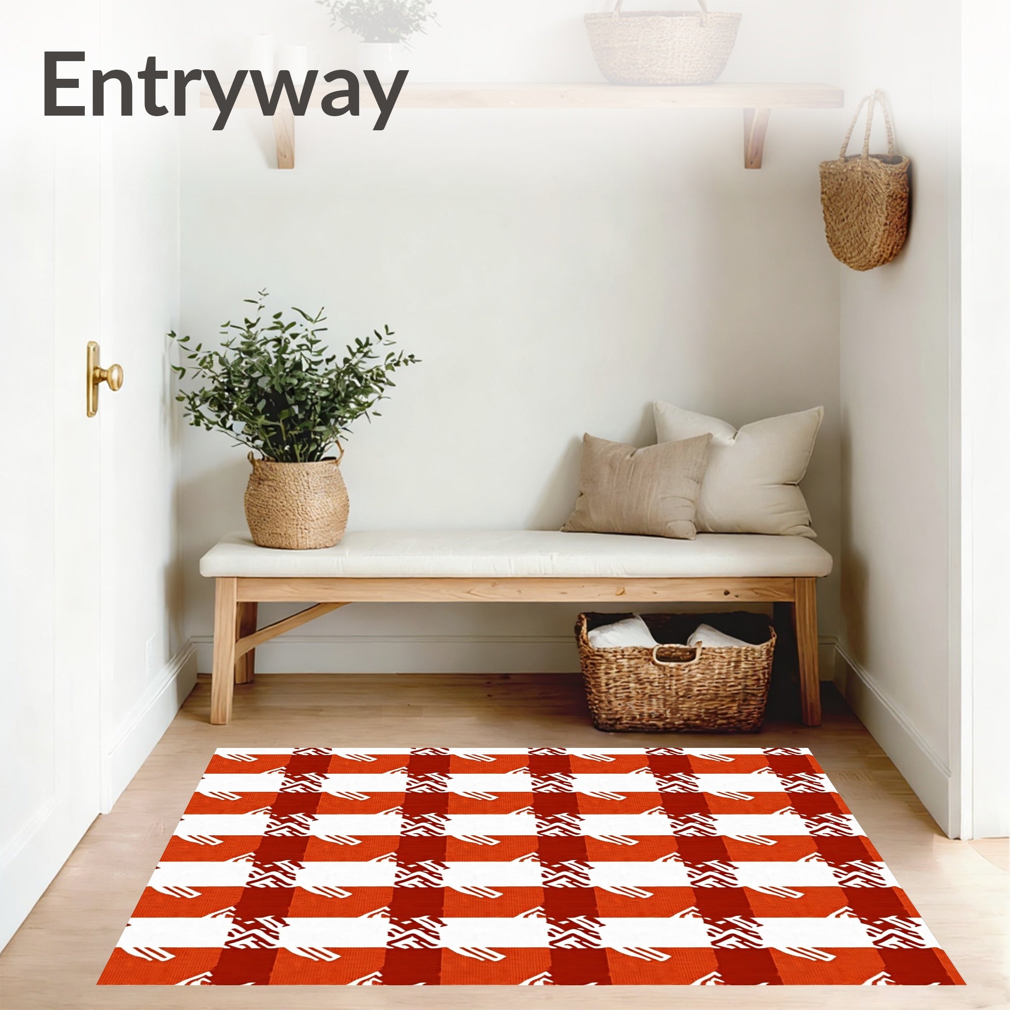 Ultra Soft Area Rug, Non Slip, Stain Resistant, Washable Area Rugs for Living Room, Bedroom, Buffalo Farmhouse Harvest Lattice Entryway Welcome(White) Overview: