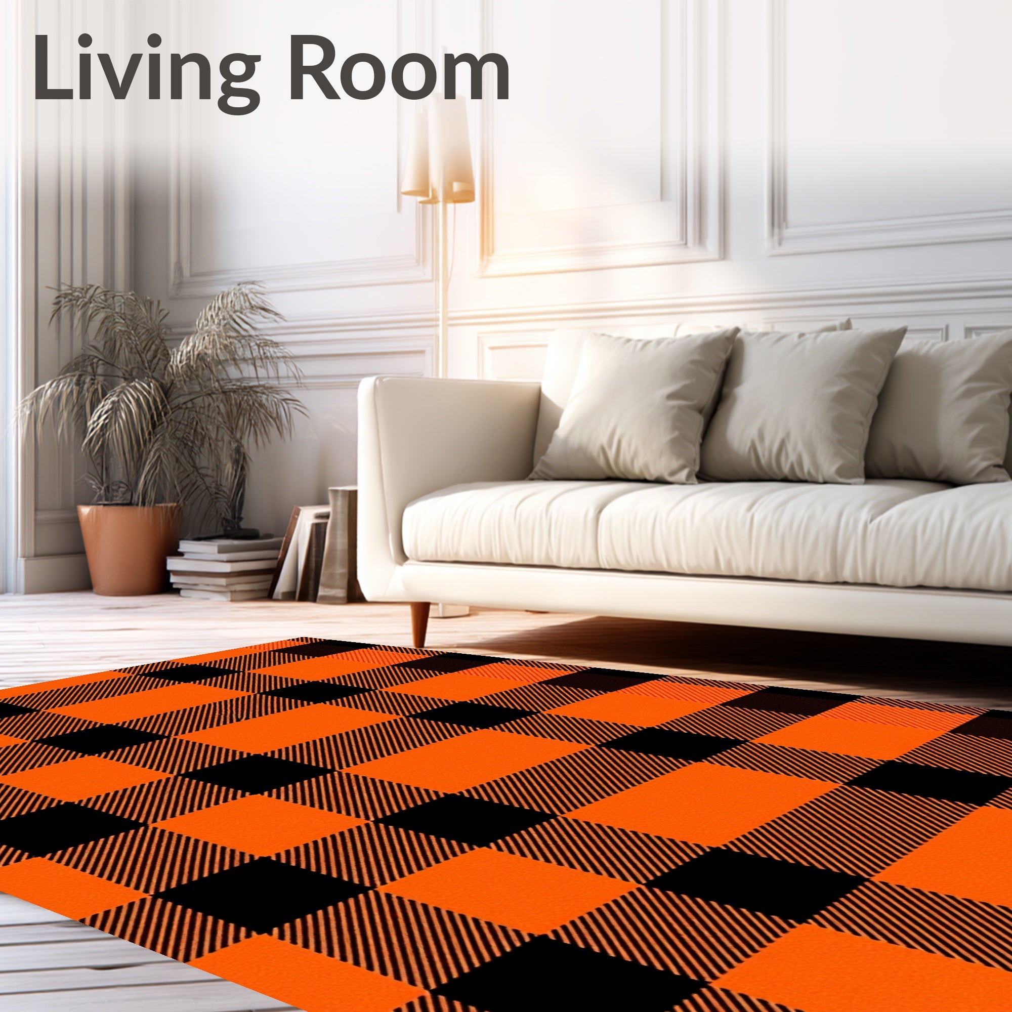 Ultra Soft Area Rug, Non Slip, Stain Resistant, Washable Area Rugs for Living Room, Bedroom, Buffalo Plaid Harvest Accent(Orange) Overview: