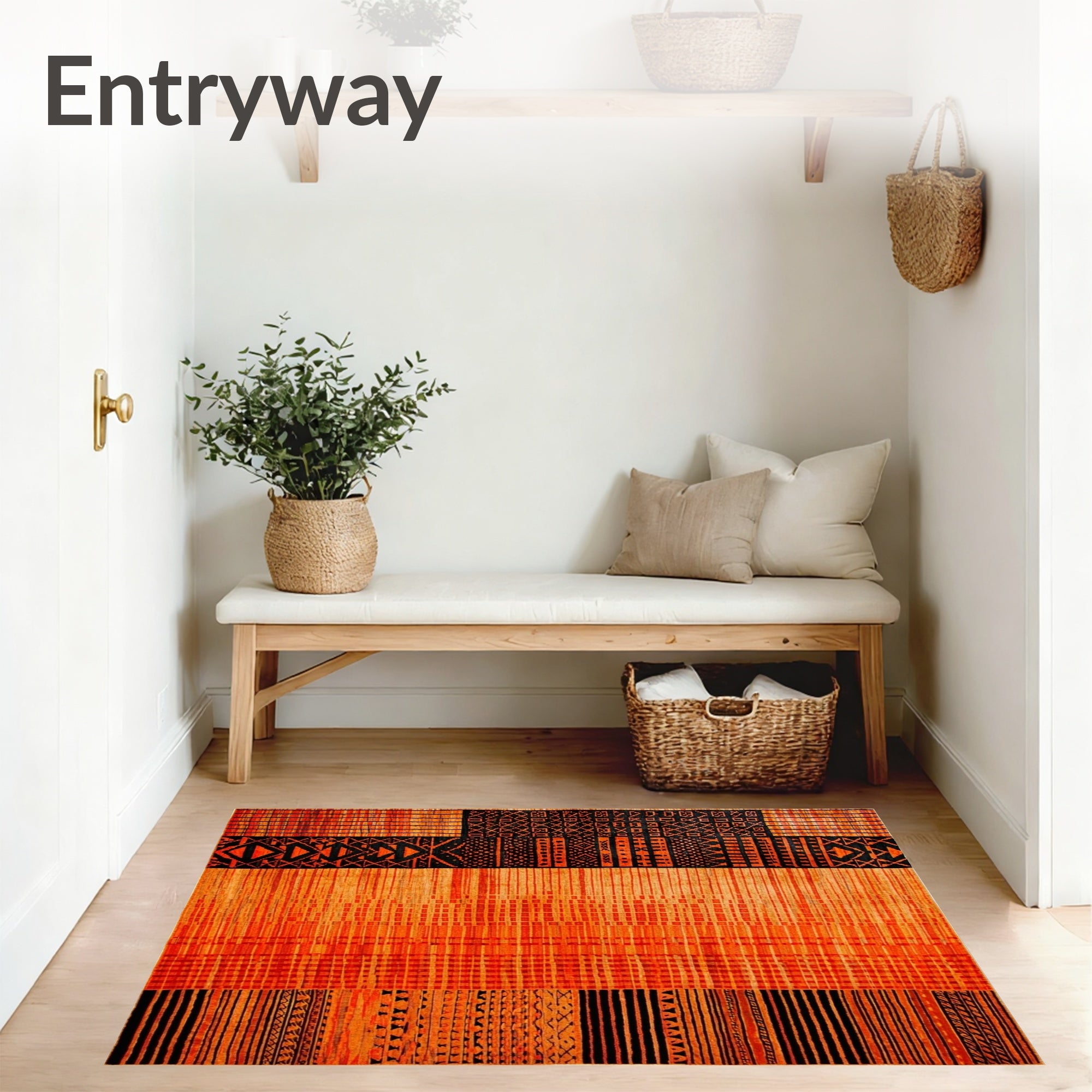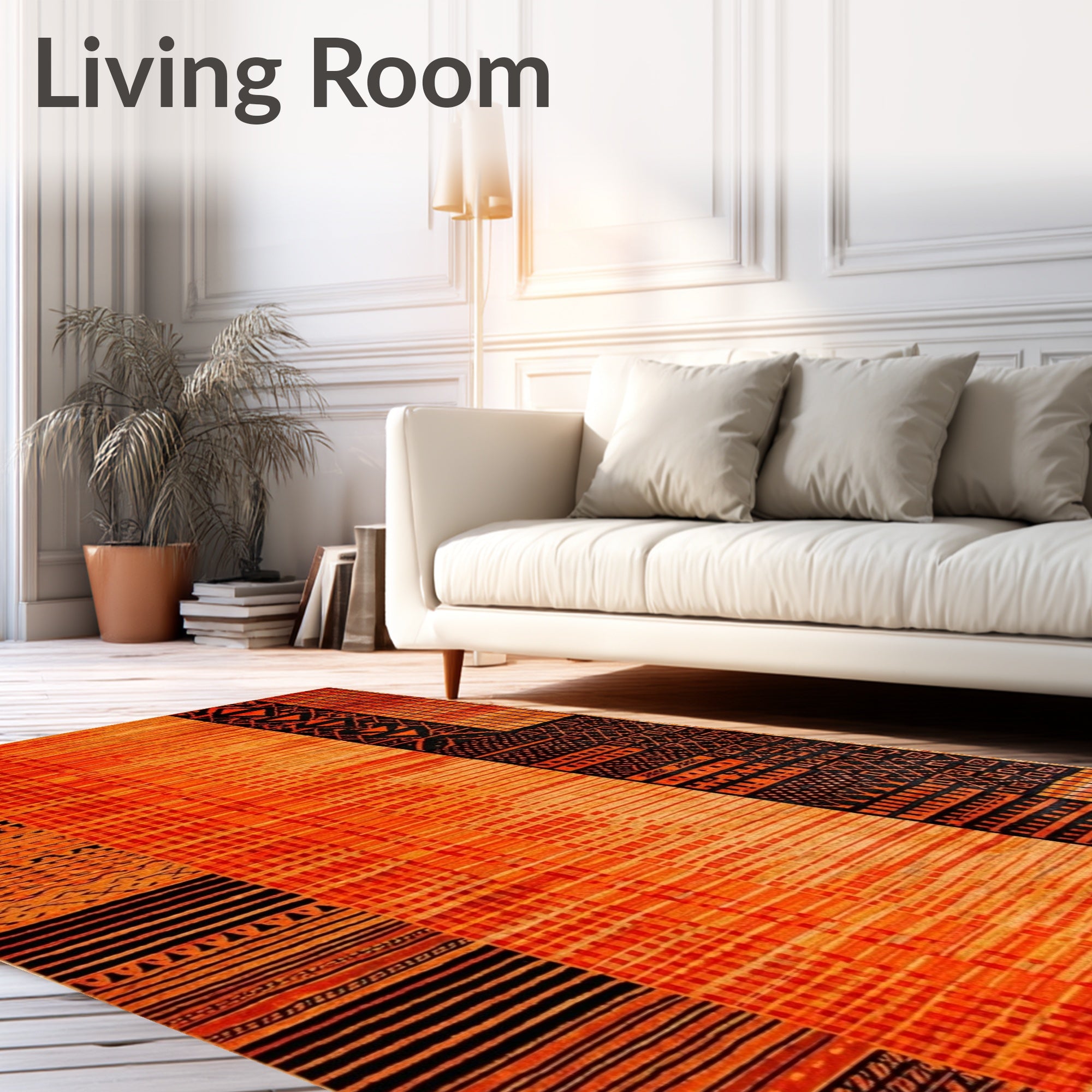 Ultra Soft Area Rug, Non Slip, Stain Resistant, Washable Area Rugs for Living Room, Bedroom, Burnt Orange Copper Fiery Red Abstract Shape Washable Rug Floor Mat(Orange) Overview: