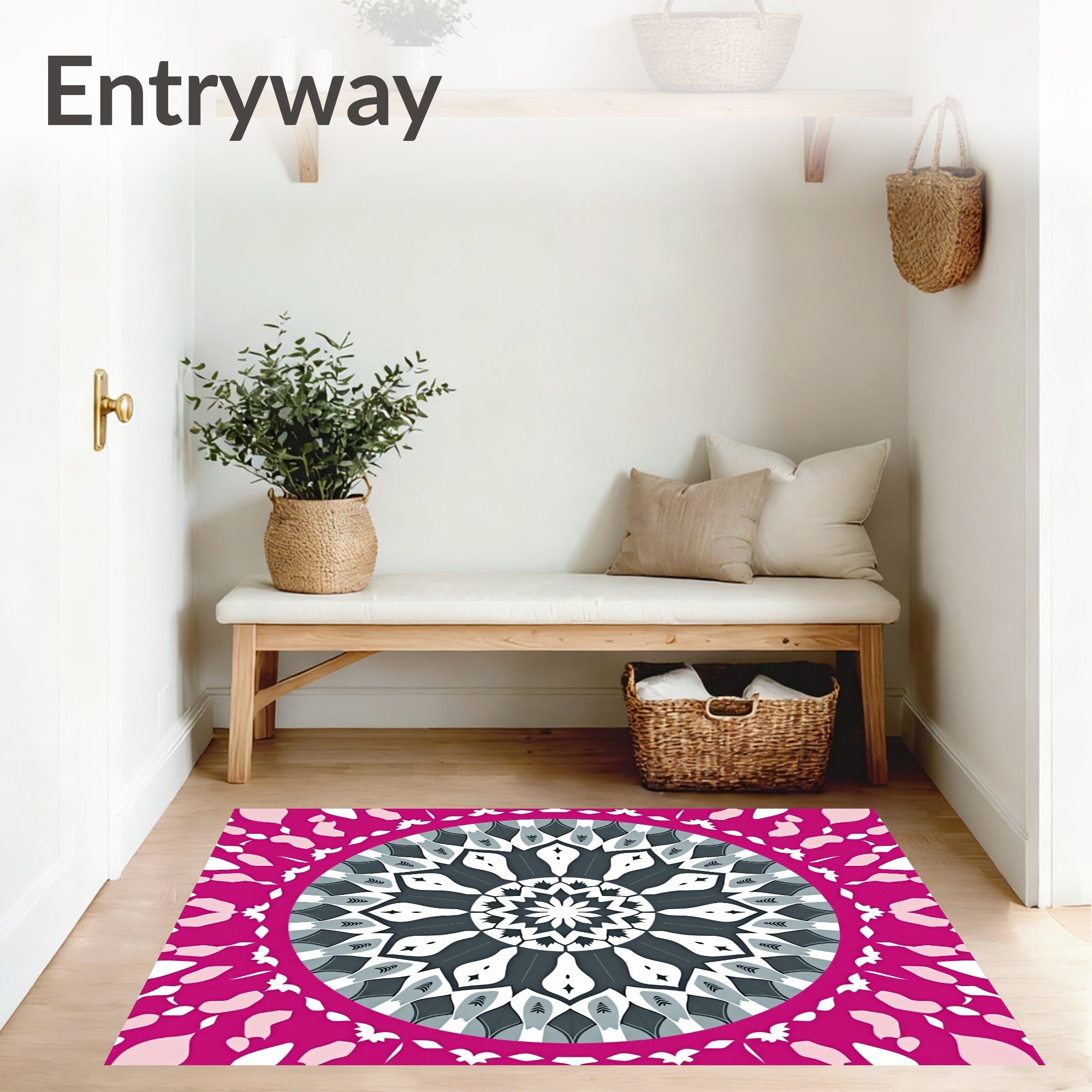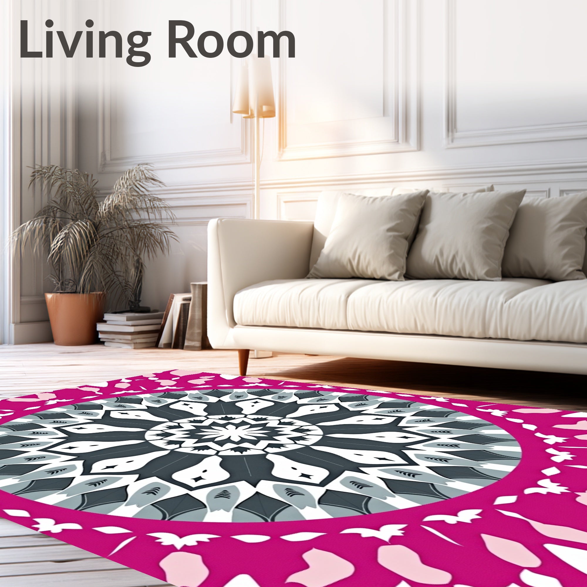 Ultra Soft Area Rug, Non Slip, Stain Resistant, Washable Area Rugs for Living Room, Bedroom, Burst Radial Symmetry Kaleidoscope Inspired Art(Pink) Overview: