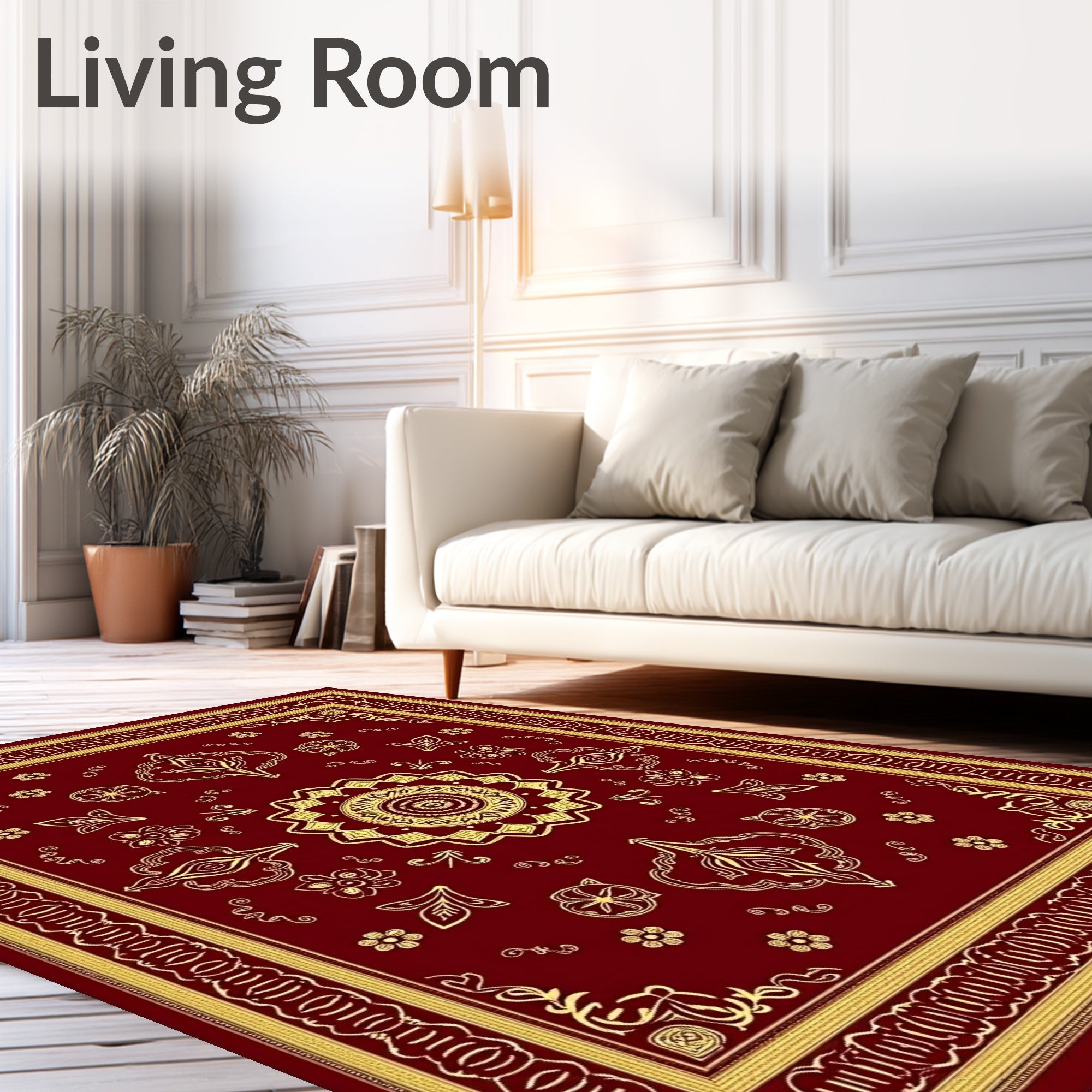 Ultra Soft Area Rug, Non Slip, Stain Resistant, Washable Area Rugs for Living Room, Bedroom, Burst Tapestry with Intricate Medallion Motifs(Red) Overview: