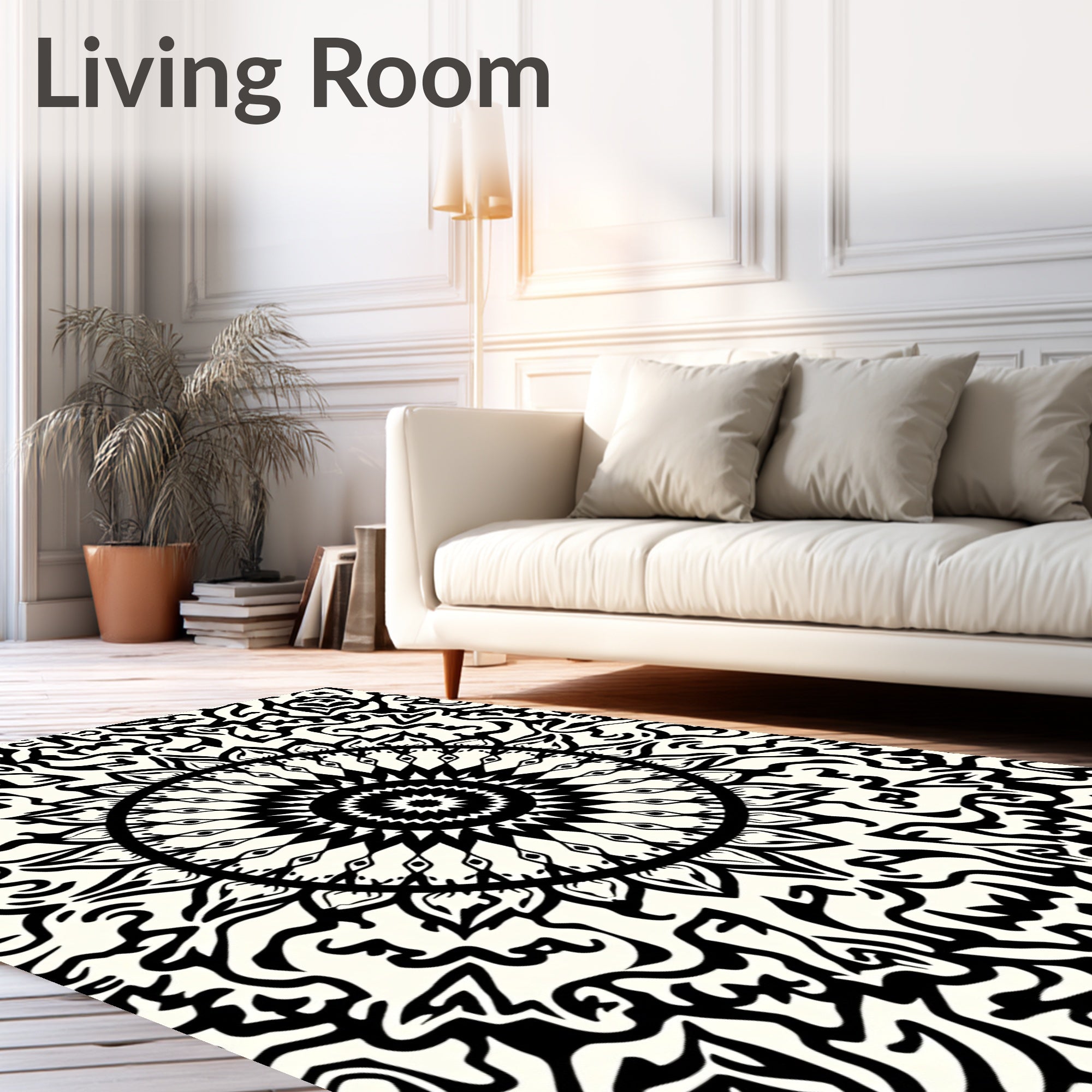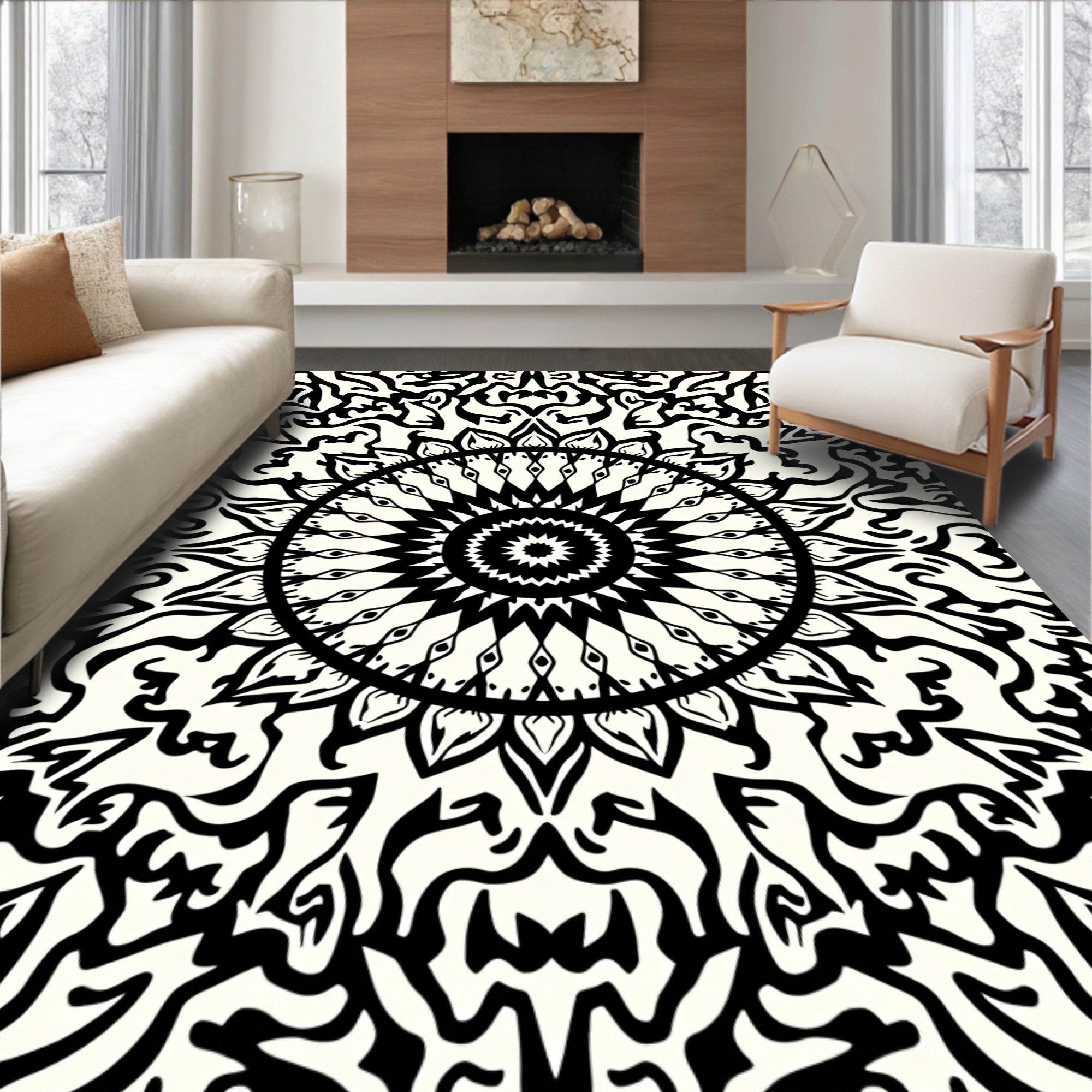Ultra Soft Area Rug, Non Slip, Stain Resistant, Washable Area Rugs for Living Room, Bedroom, Burst Tufted with Radial Symmetry(Black) Overview: