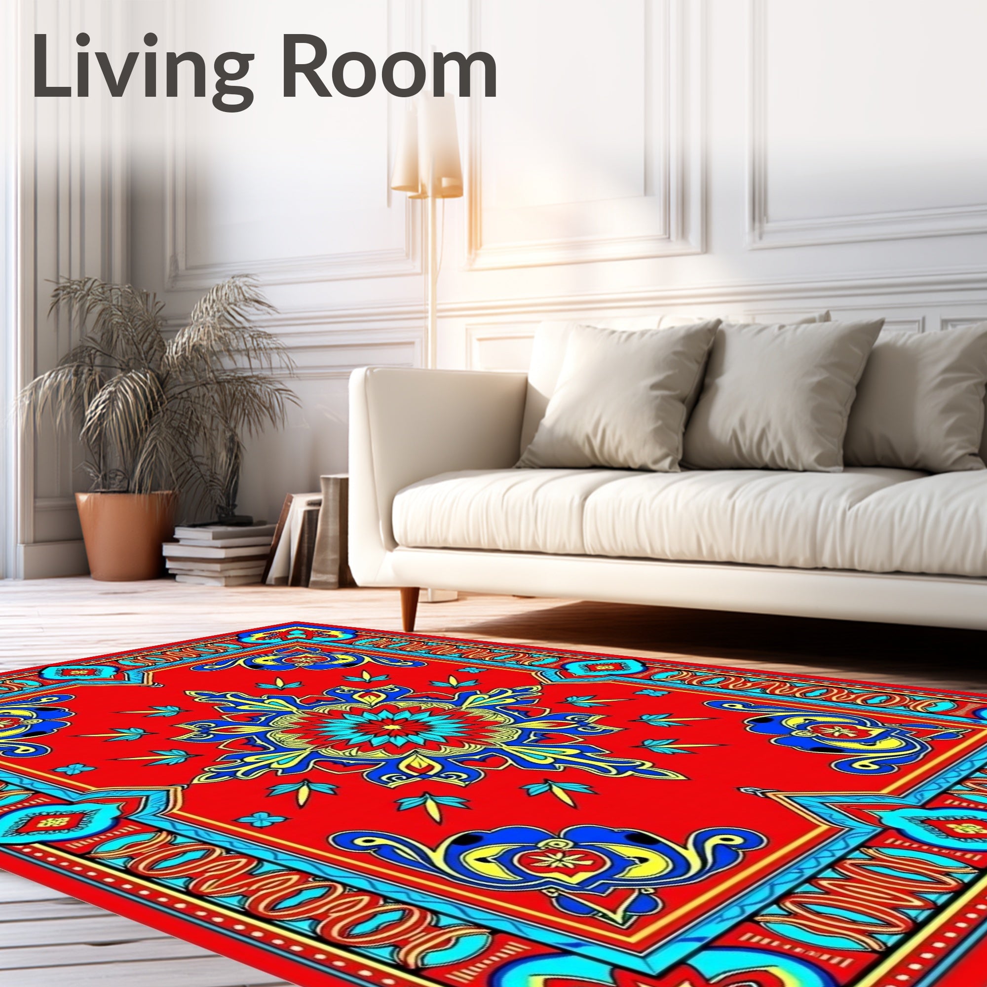 Ultra Soft Area Rug, Non Slip, Stain Resistant, Washable Area Rugs for Living Room, Bedroom, Burst with Intricate Medallion Design(Red) Overview: