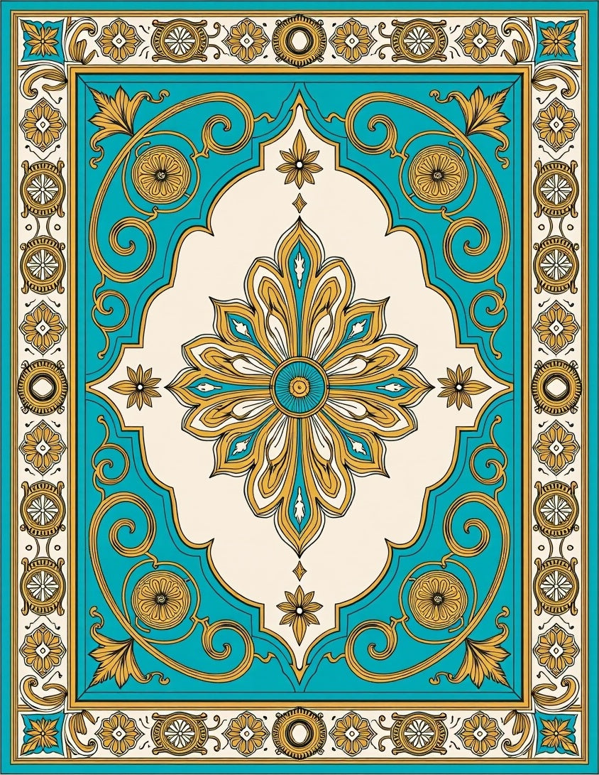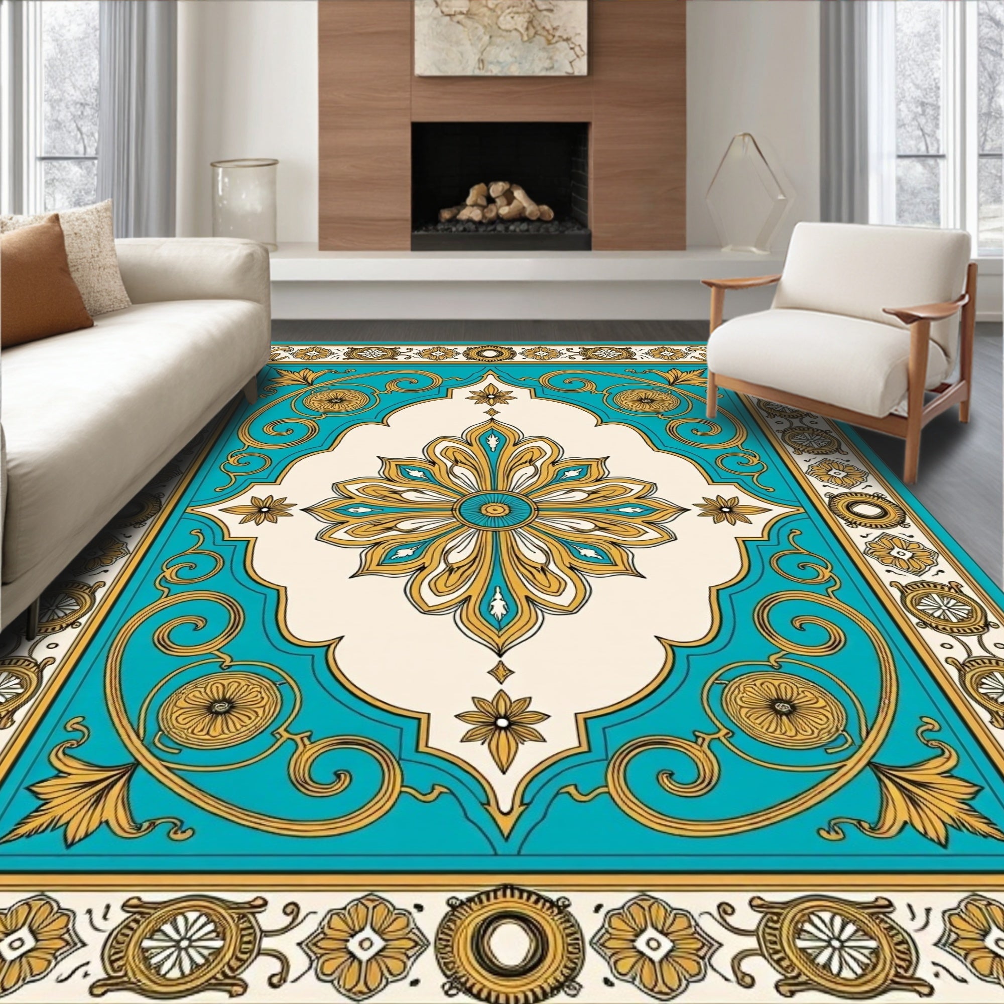 Ultra Soft Area Rug, Non Slip, Stain Resistant, Washable Area Rugs for Living Room, Bedroom, Byzantine Jewel Arabesque(Turquoise) Overview: