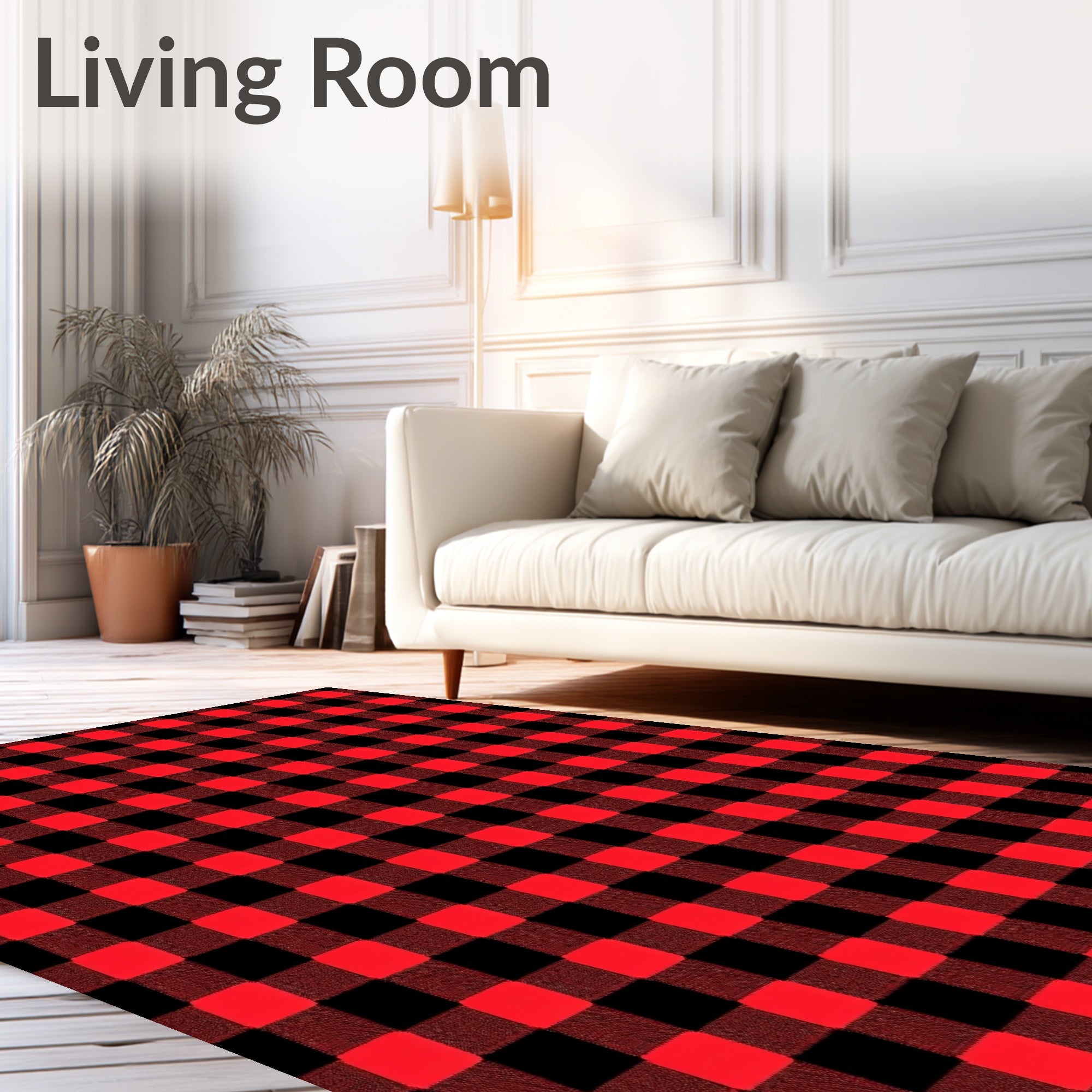 Ultra Soft Area Rug, Non Slip, Stain Resistant, Washable Area Rugs for Living Room, Bedroom, Cabin Checkered Front Step Accessory(Red) Overview: