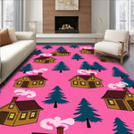 Ultra Soft Area Rug, Non Slip, Stain Resistant, Washable Area Rugs for Living Room, Bedroom, Cabin Pine Forest Mountain Holiday Retreat(Pink) Overview: