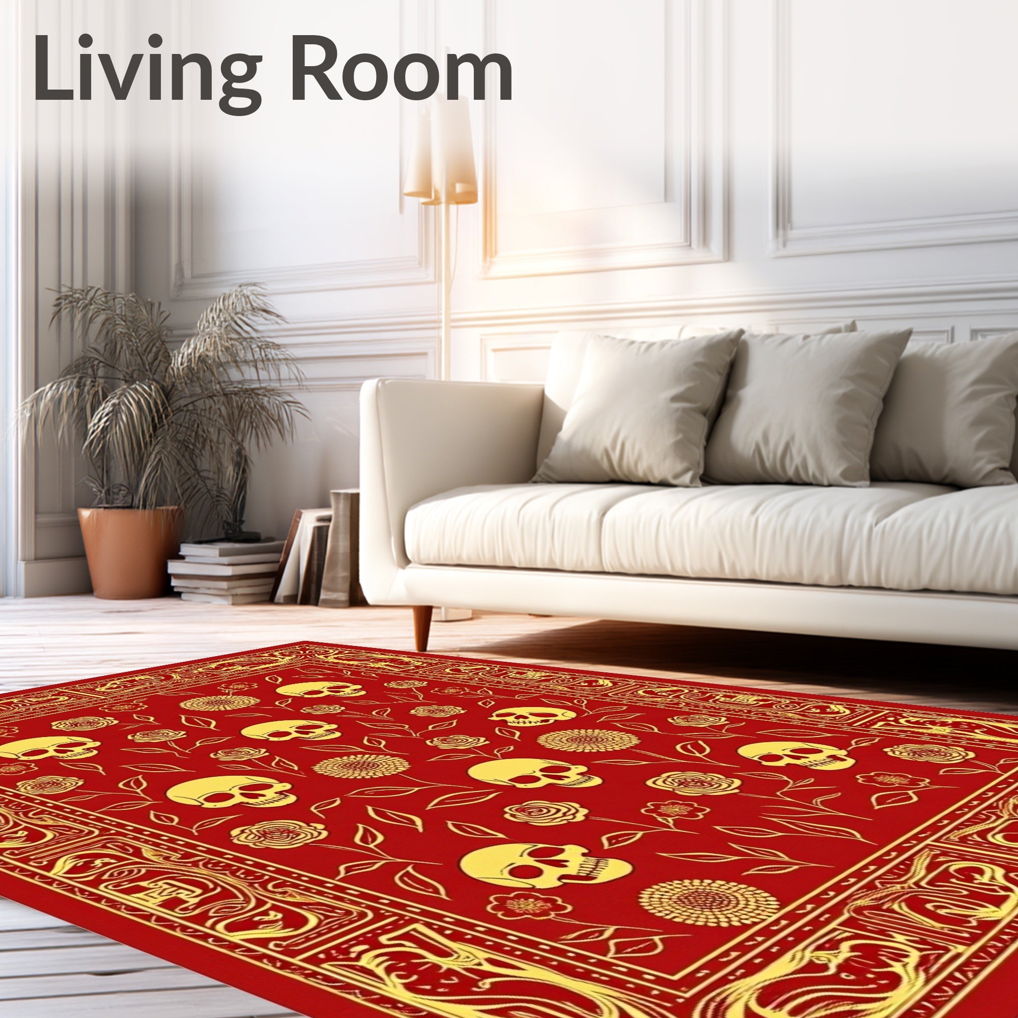 Ultra Soft Area Rug, Non Slip, Stain Resistant, Washable Area Rugs for Living Room, Bedroom, Calavera Botanical Design Door Mats Anti Slip Indoor(Red) Overview: