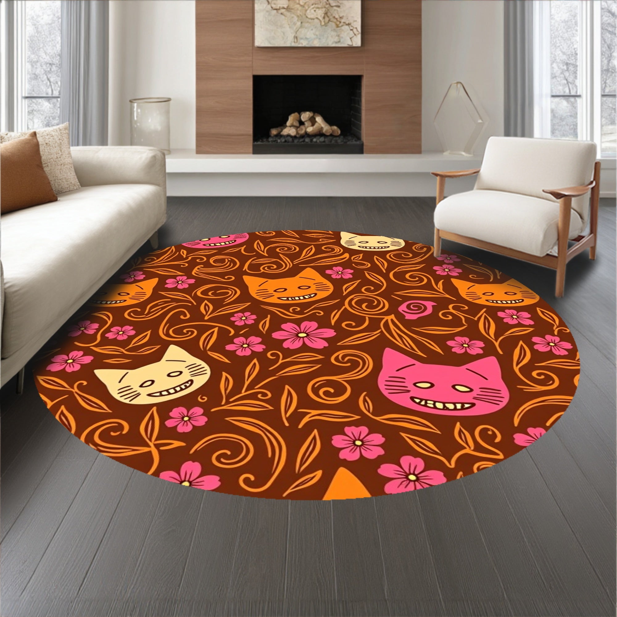 Ultra Soft Area Rug, Non Slip, Stain Resistant, Washable Area Rugs for Living Room, Bedroom, Calavera Cat Carnival With Festive Petals Design(Brown) Overview: