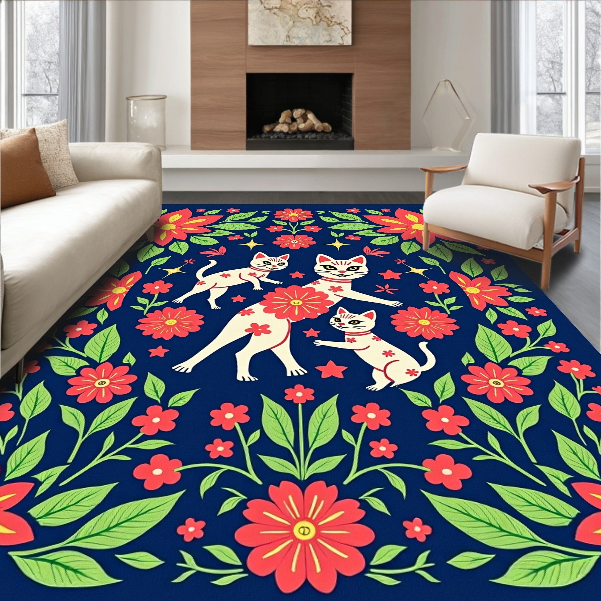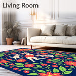 Ultra Soft Area Rug, Non Slip, Stain Resistant, Washable Area Rugs for Living Room, Bedroom, Calavera Whiskers Blossom Festivity Semicircle Doormat(Blue) Overview: