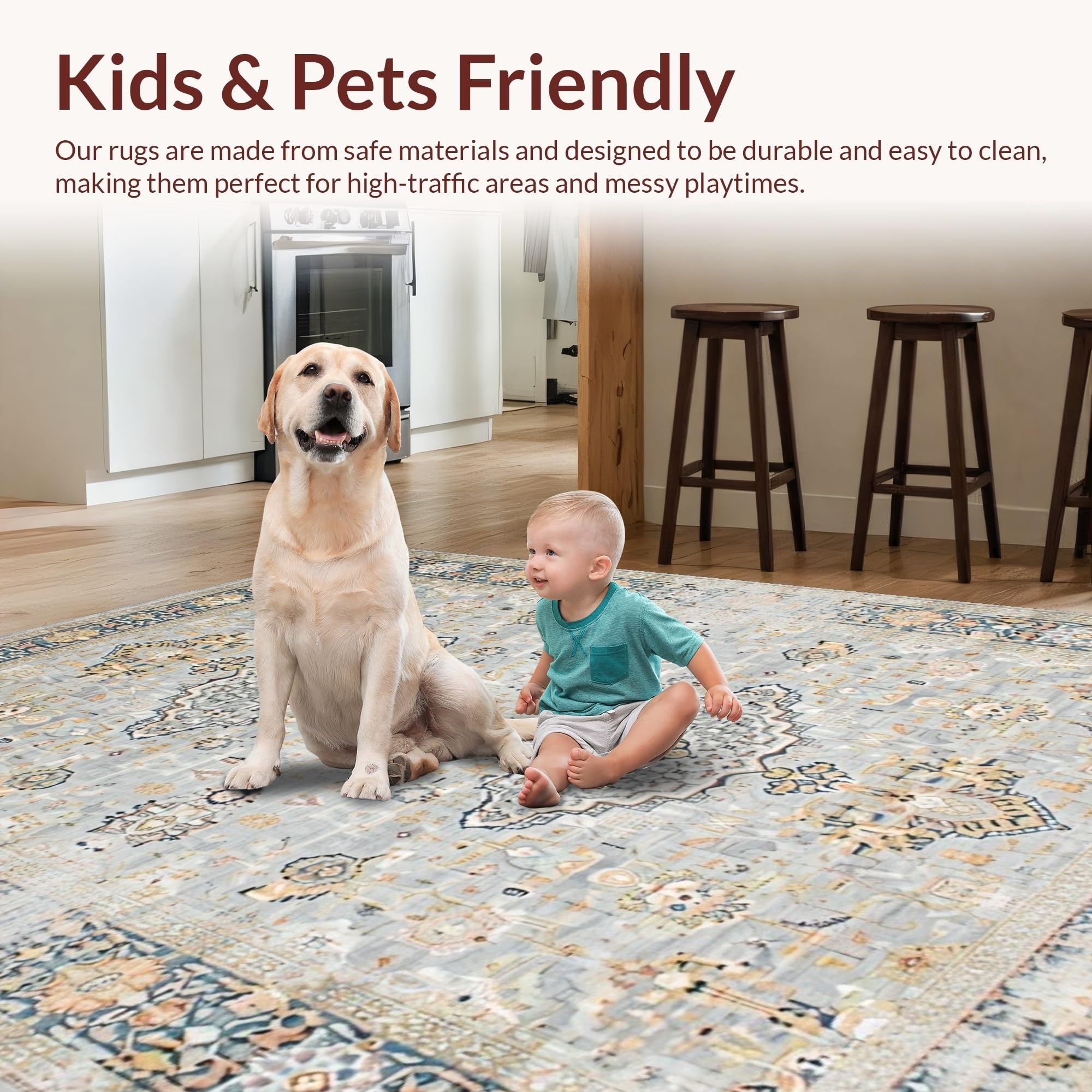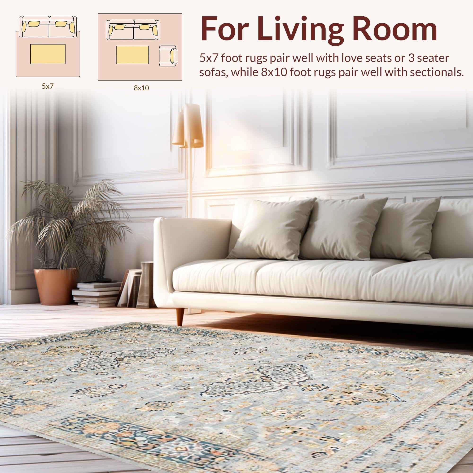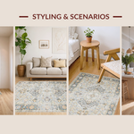 Ultra Soft Area Rug, Non Slip, Stain Resistant, Washable Area Rugs for Living Room, Bedroom, Calm Ivory Trellis Aesthetic(Gray) Overview: