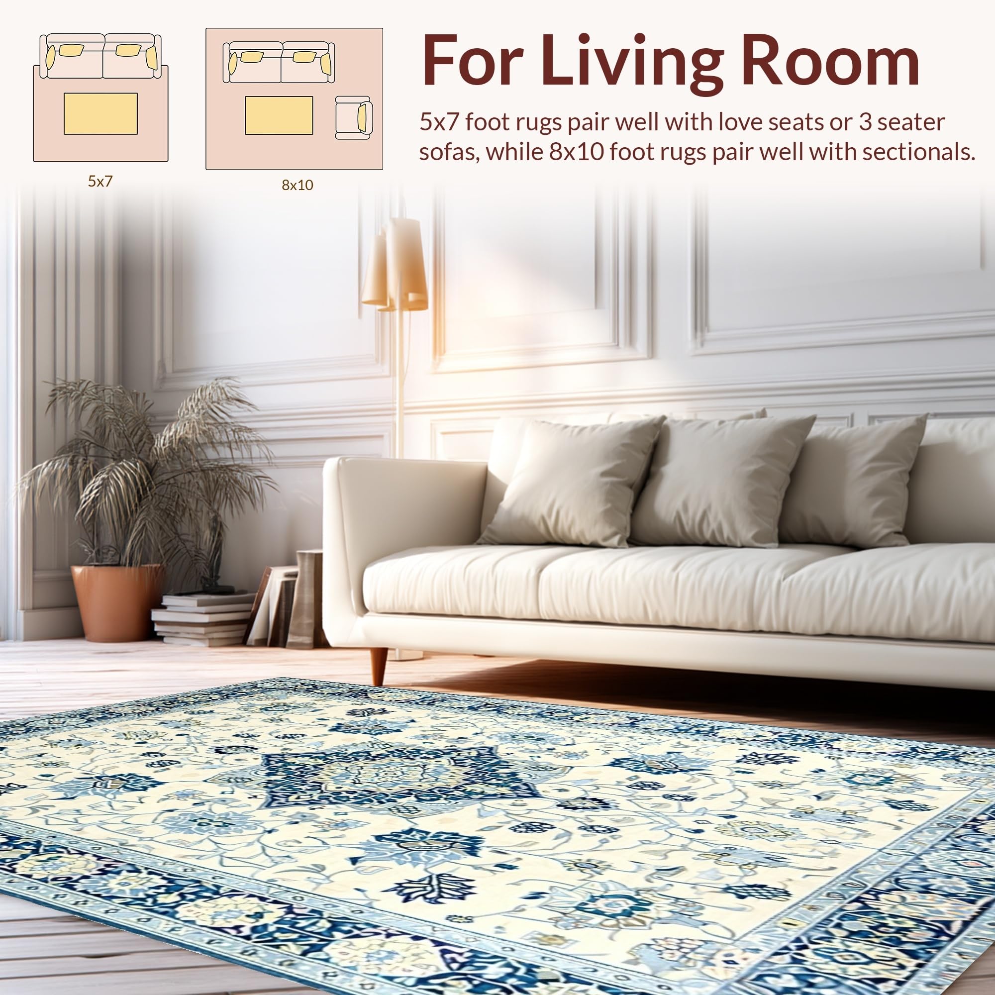 Ultra Soft Area Rug, Non Slip, Stain Resistant, Washable Area Rugs for Living Room, Bedroom, Calming Cream Abstract Arrangements(Beige) Overview: