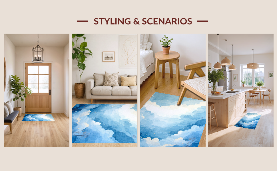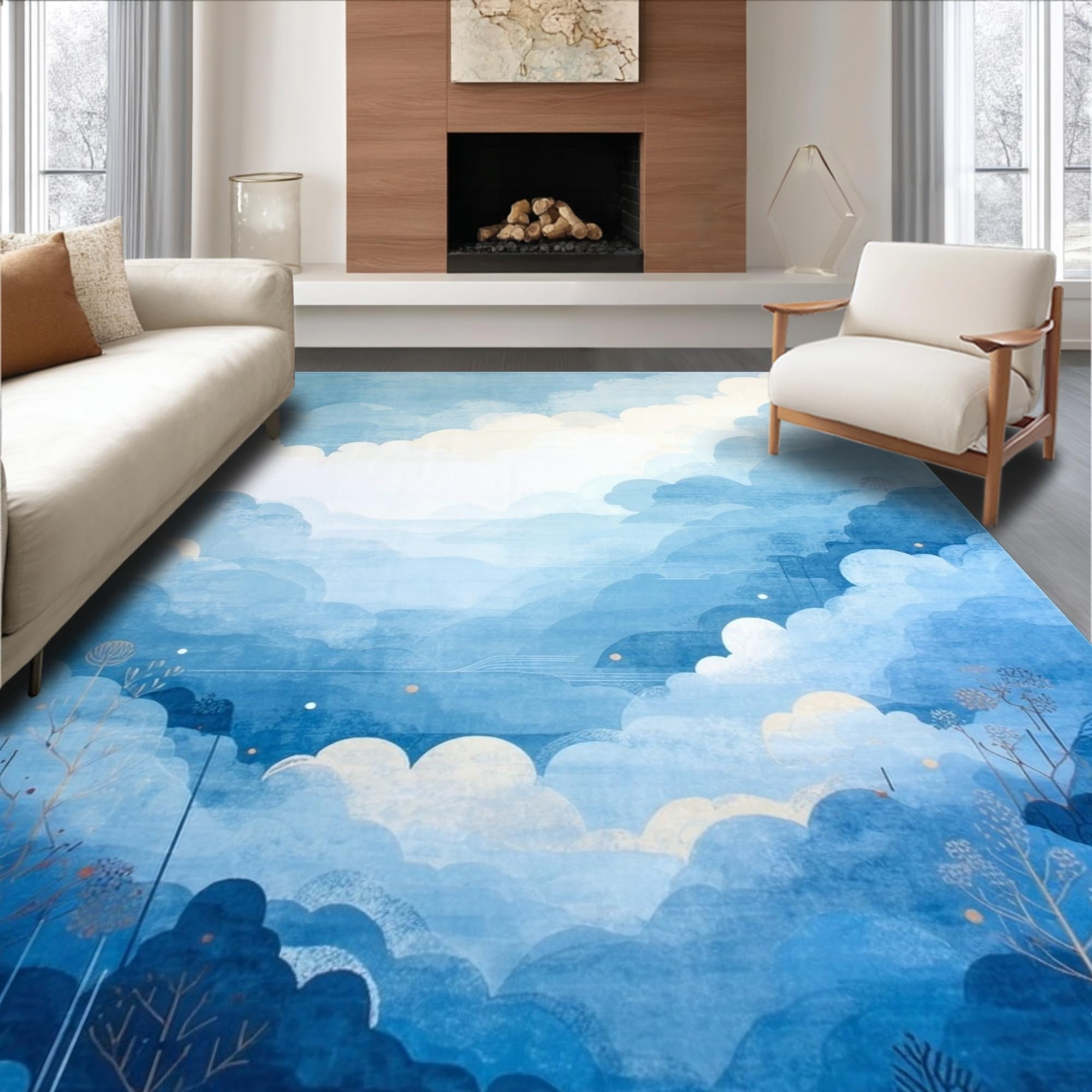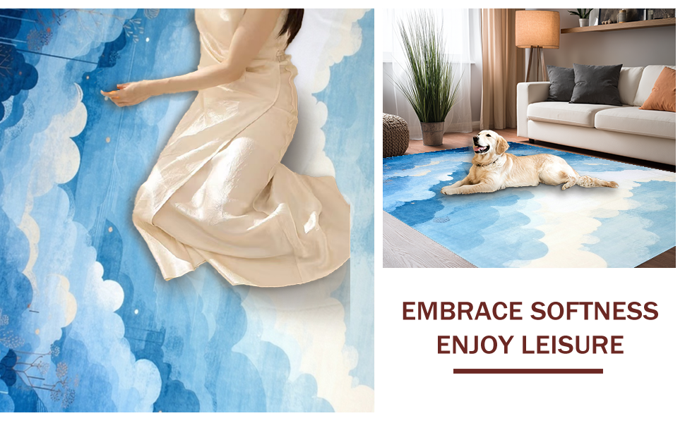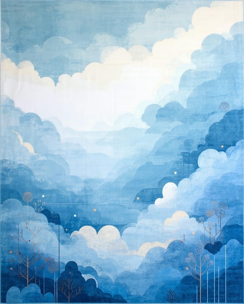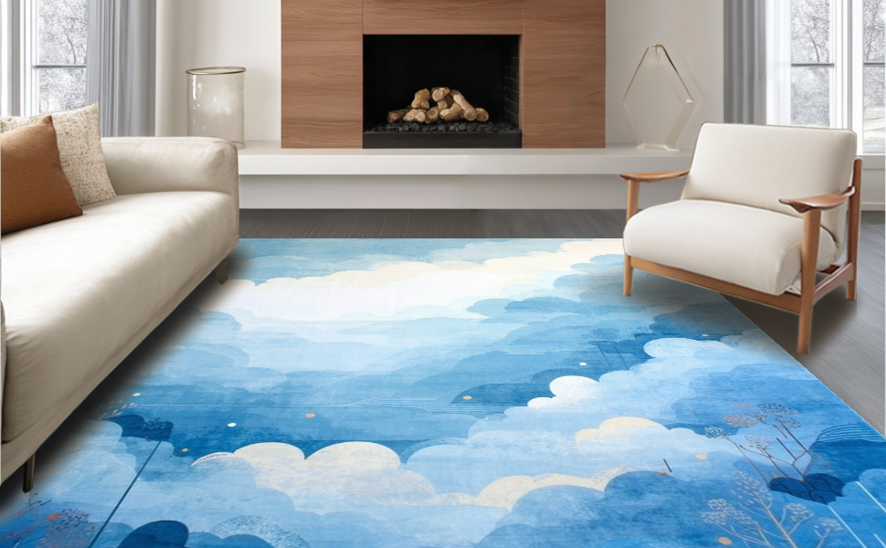 Ultra Soft Area Rug, Non Slip, Stain Resistant, Washable Area Rugs for Living Room, Bedroom, Calming Light Tone Swirl(Blue) Overview: