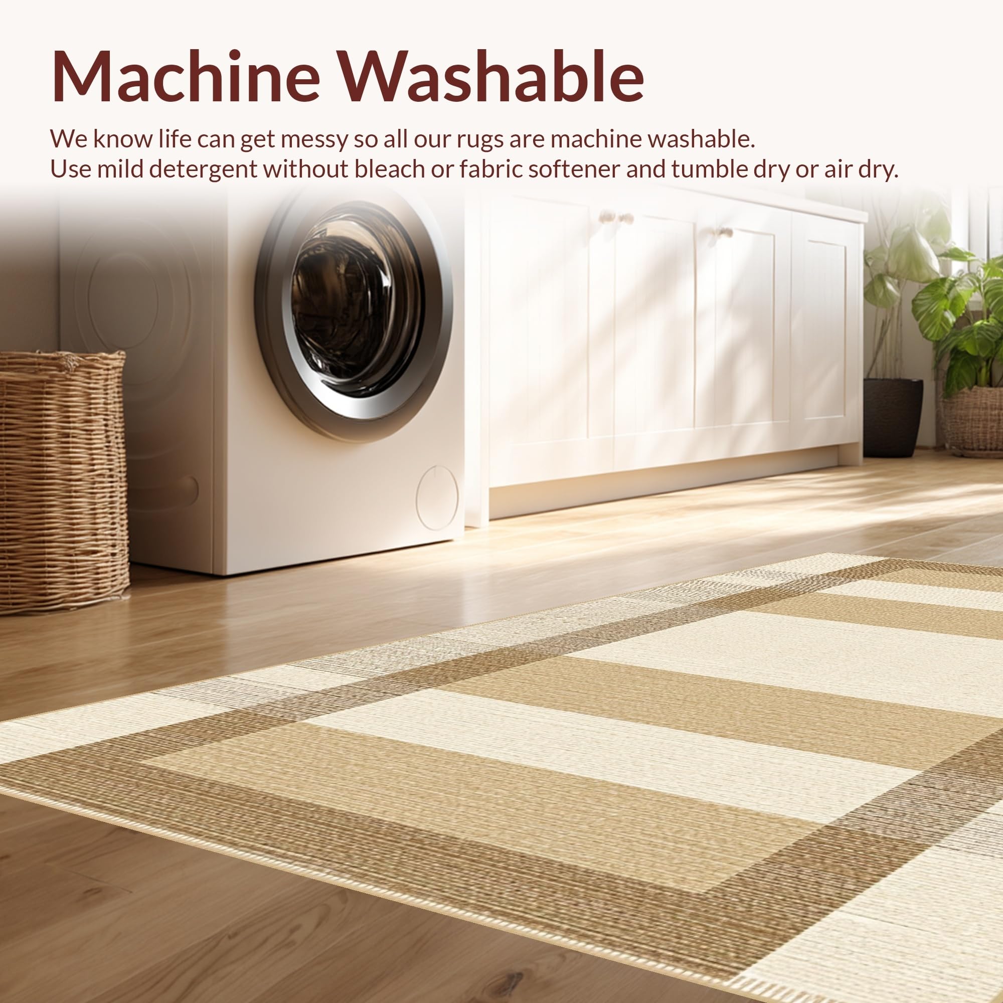 - Machine Washable: Our rugs can be easily thrown in the wash machine.