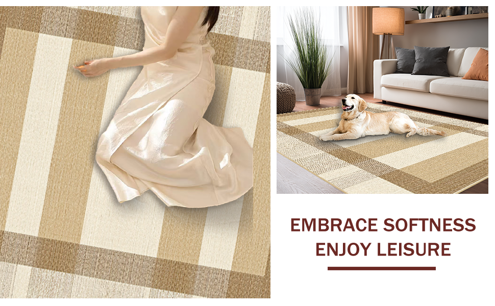 Ultra Soft Area Rug, Non Slip, Stain Resistant, Washable Area Rugs for Living Room, Bedroom, Calming Natural Fiber Design(Beige) Overview: