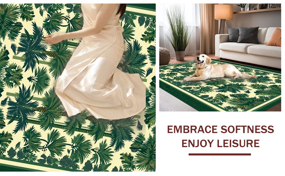 Ultra Soft Area Rug, Non Slip, Stain Resistant, Washable Area Rugs for Living Room, Bedroom, Calming Nature-Inspired Tones(Green) Overview: