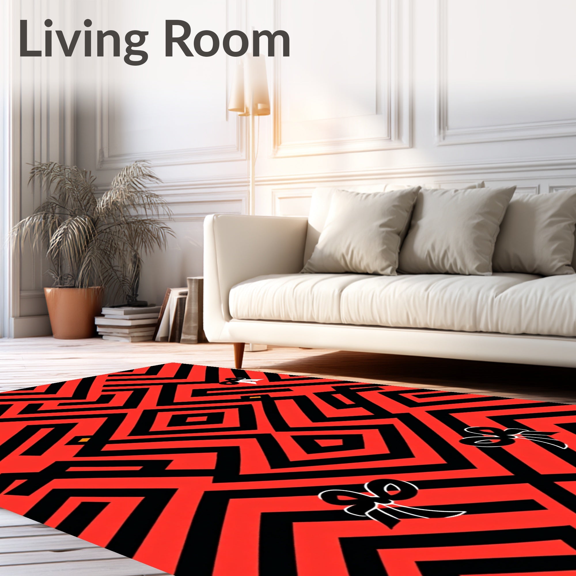 Ultra Soft Area Rug, Non Slip, Stain Resistant, Washable Area Rugs for Living Room, Bedroom, Cane Stripe Chevron Design with Ribbon Bow(Red) Overview: