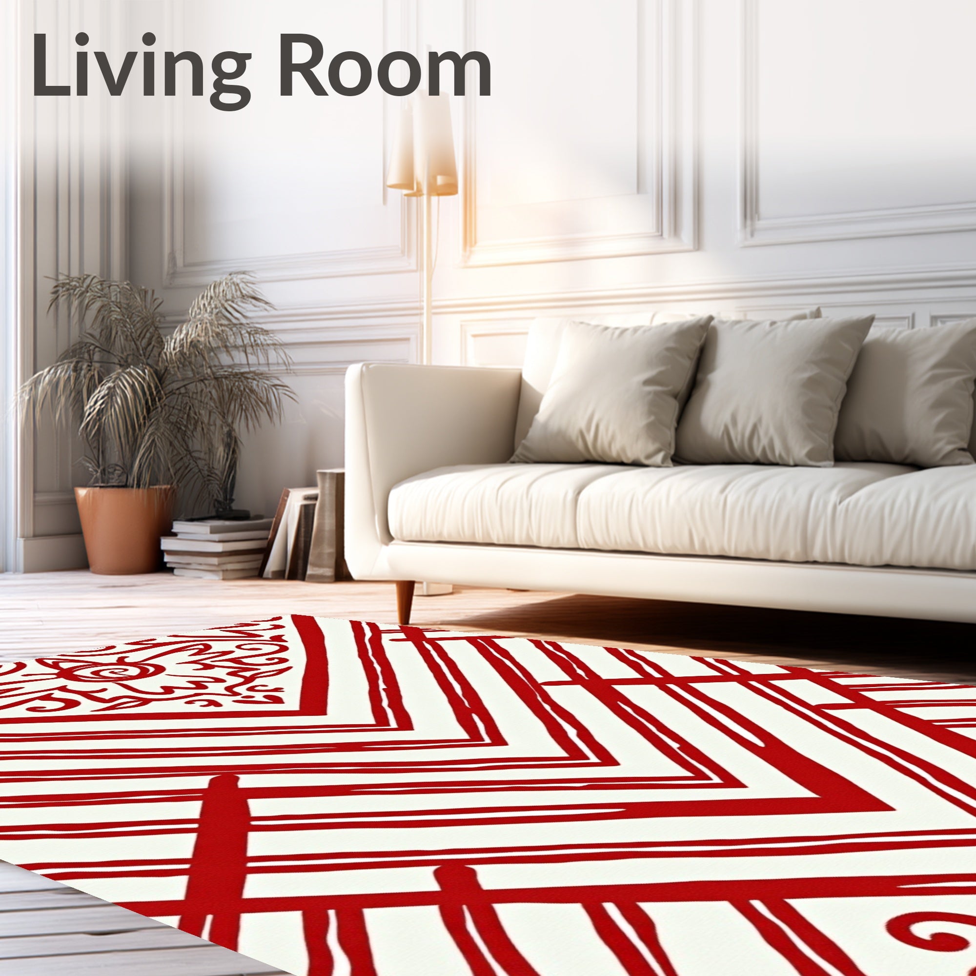Ultra Soft Area Rug, Non Slip, Stain Resistant, Washable Area Rugs for Living Room, Bedroom, Cane Stripe Chevron with Sweet Holiday Charm(Red) Overview: