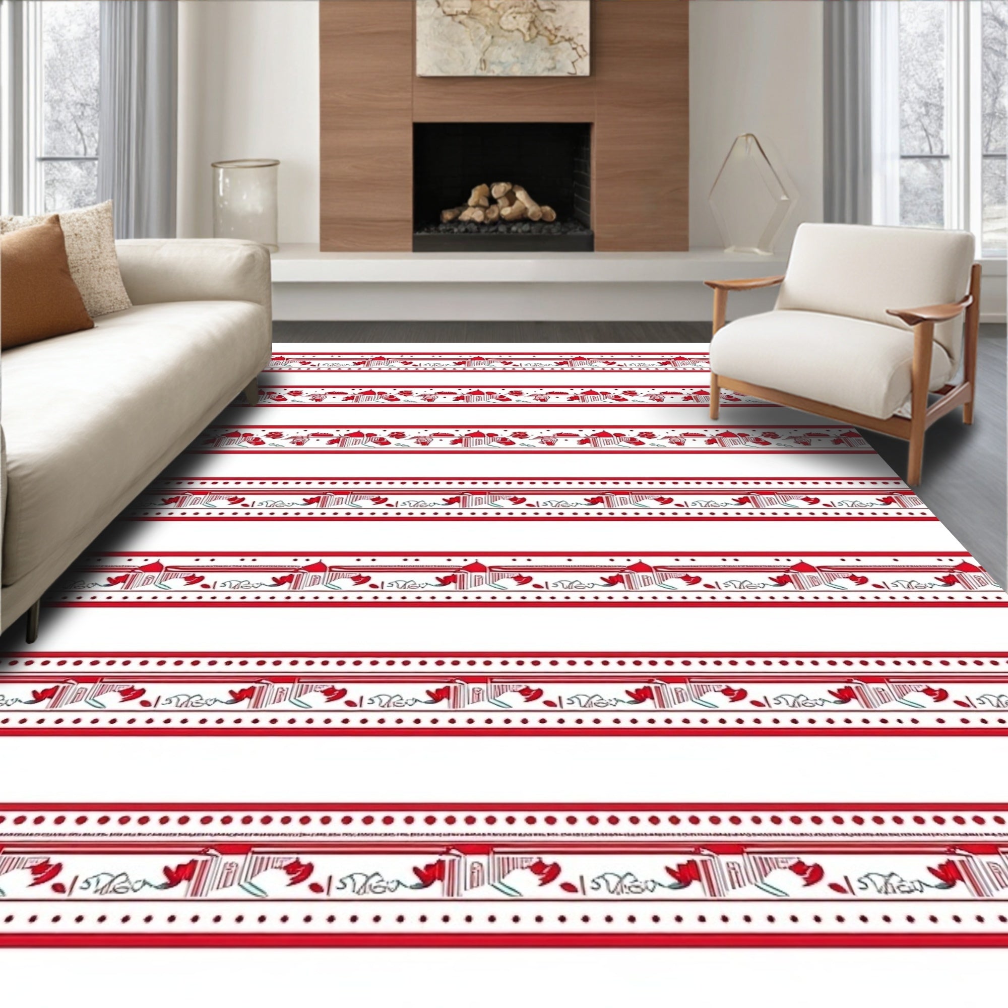 Ultra Soft Area Rug, Non Slip, Stain Resistant, Washable Area Rugs for Living Room, Bedroom, Cane Stripe Medallion with Crystal(Red) Overview: