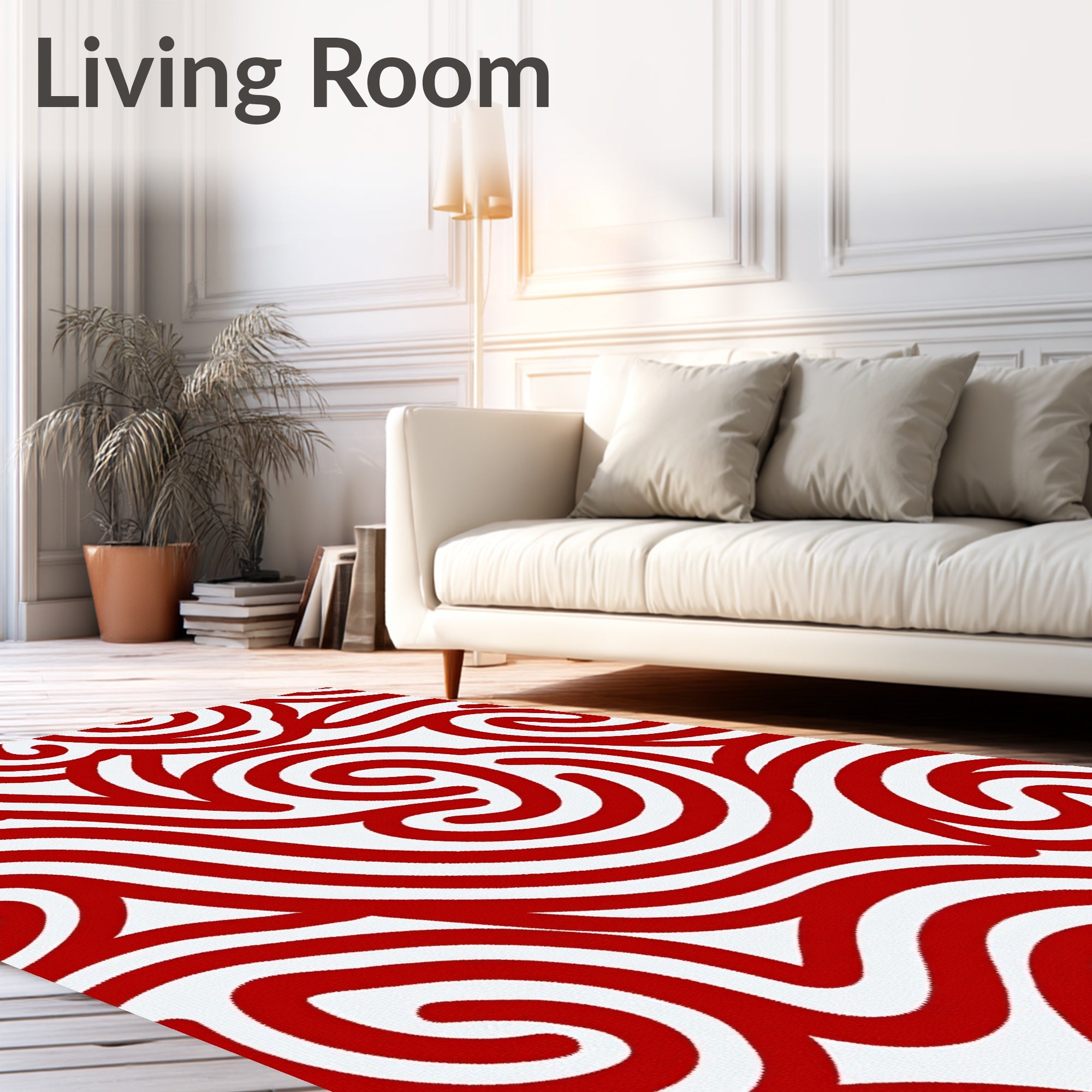 Ultra Soft Area Rug, Non Slip, Stain Resistant, Washable Area Rugs for Living Room, Bedroom, Cane Stripe Swirl Festive Holiday Decorative Pathway(Red) Overview: