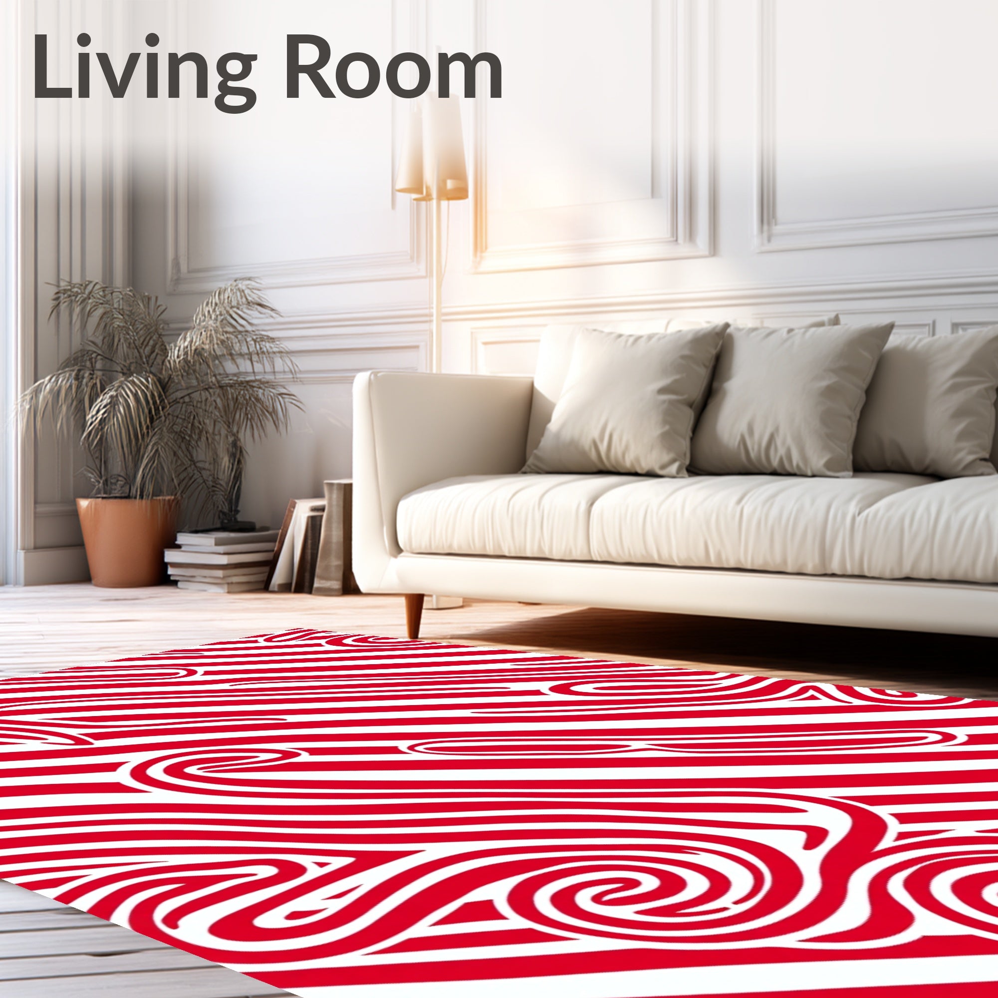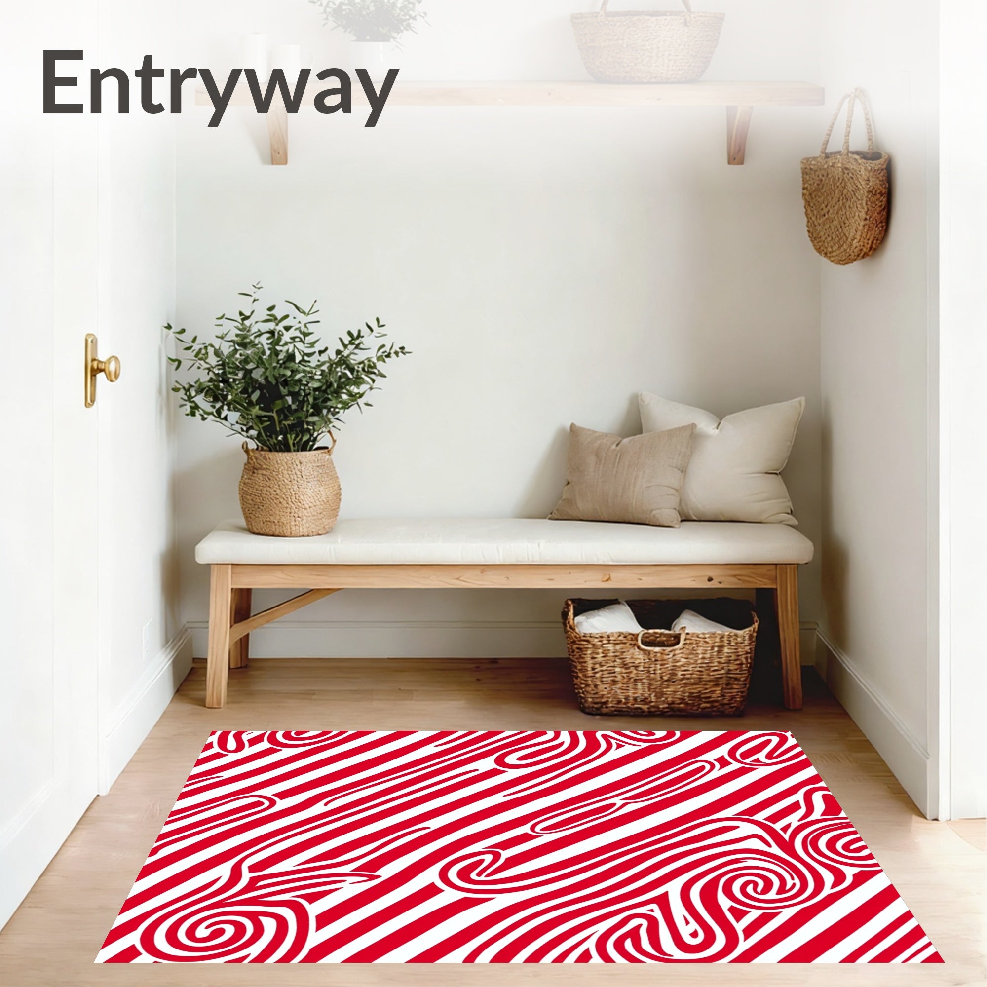 Ultra Soft Area Rug, Non Slip, Stain Resistant, Washable Area Rugs for Living Room, Bedroom, Cane Stripe Swirl with Peppermint Holiday Spiral(Red) Overview: