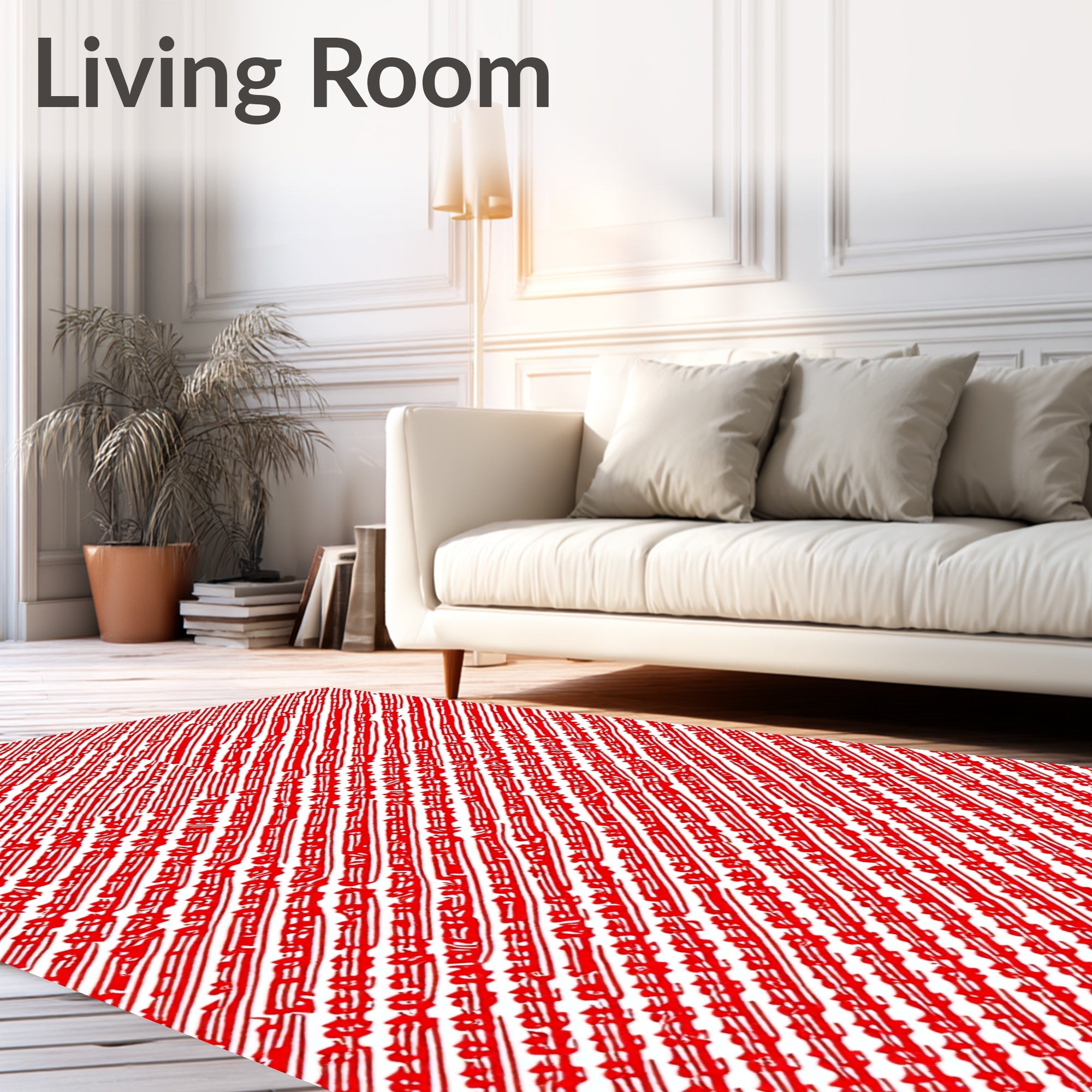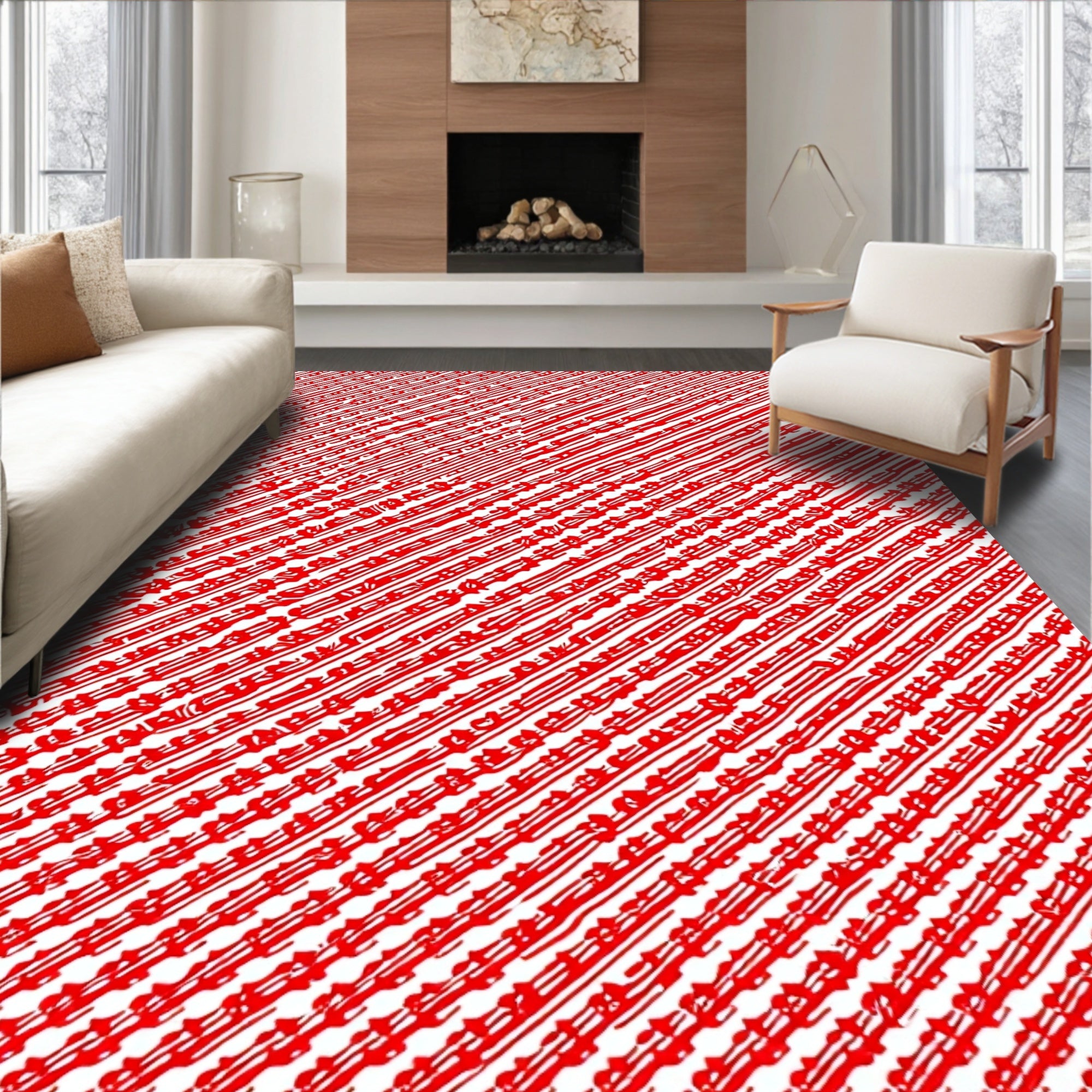 Ultra Soft Area Rug, Non Slip, Stain Resistant, Washable Area Rugs for Living Room, Bedroom, Cane Stripe with Gingerbread House(Red) Overview: