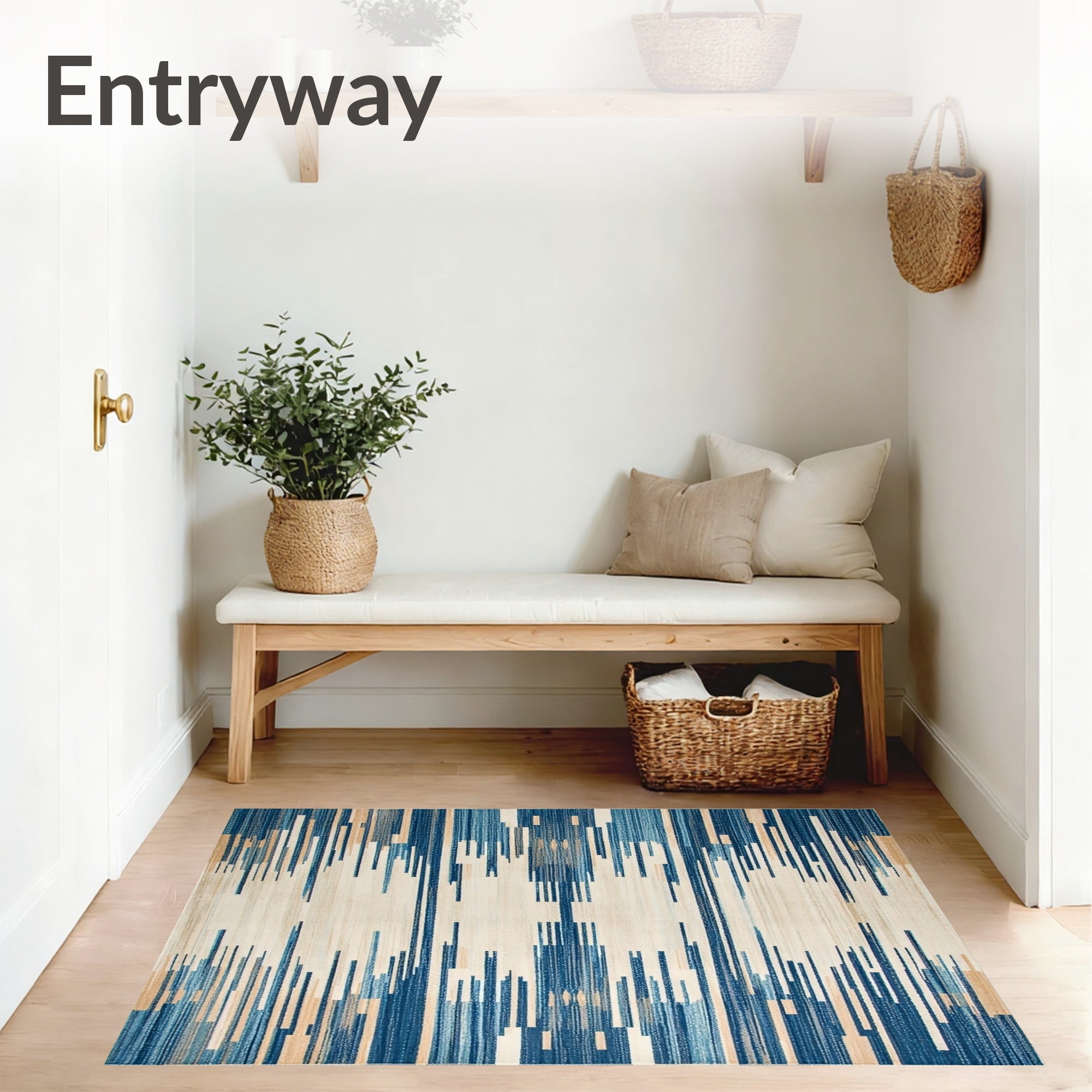 Ultra Soft Area Rug, Non Slip, Stain Resistant, Washable Area Rugs for Living Room, Bedroom, Canyon Sunset Area Handwoven Western Style(Blue) Overview: