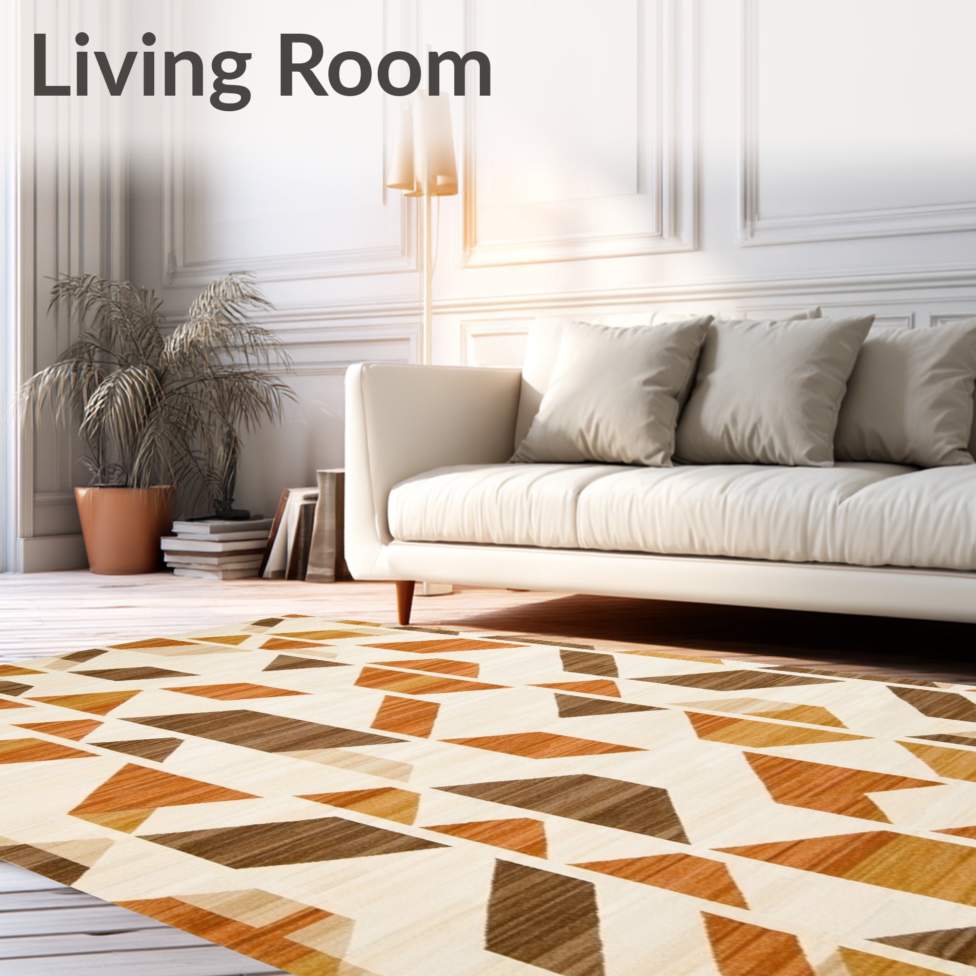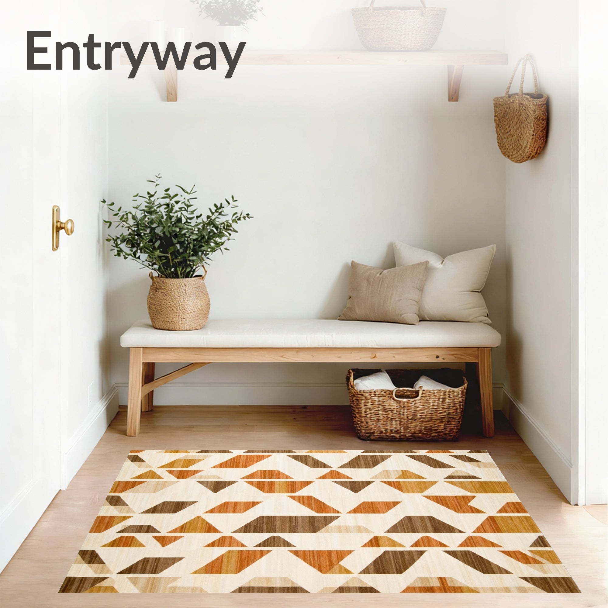 Ultra Soft Area Rug, Non Slip, Stain Resistant, Washable Area Rugs for Living Room, Bedroom, Canyon Winds Collection Angular Shapes in Warm Colors(Brown) Overview:
