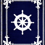 Captain Entryway Rug With Nautical Helm Design Maritime Decor(Blue)