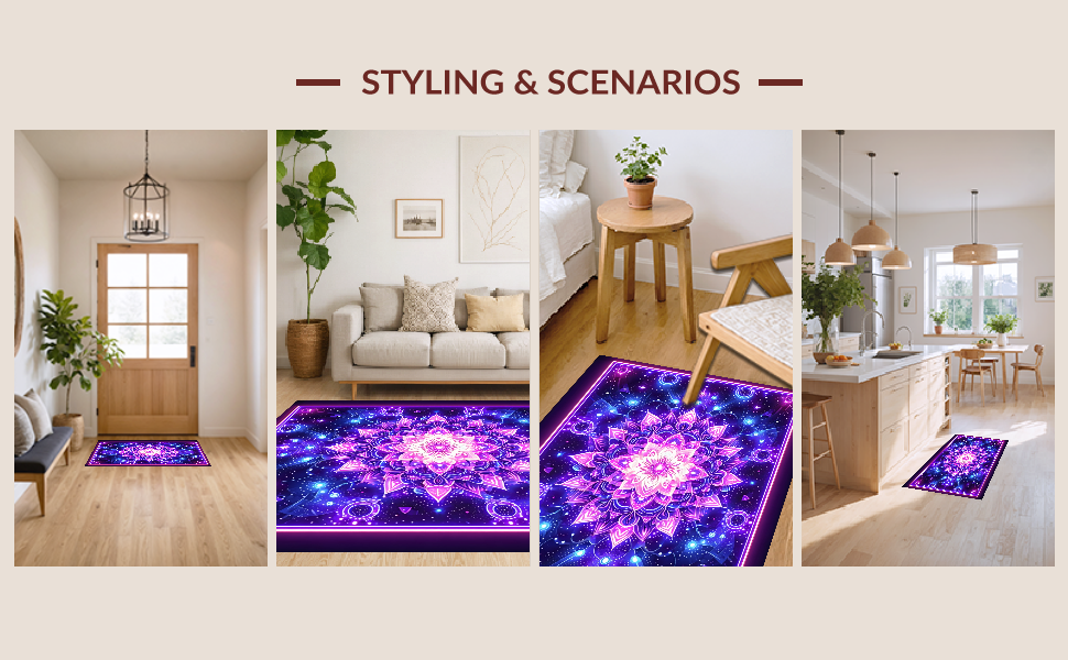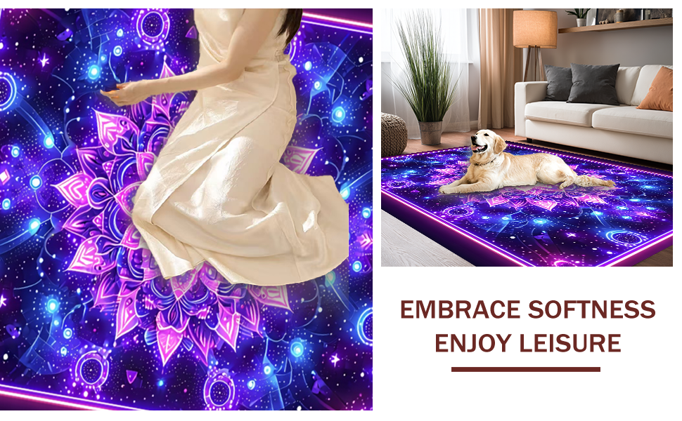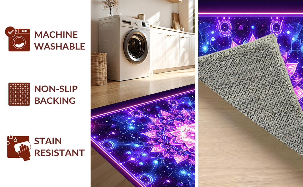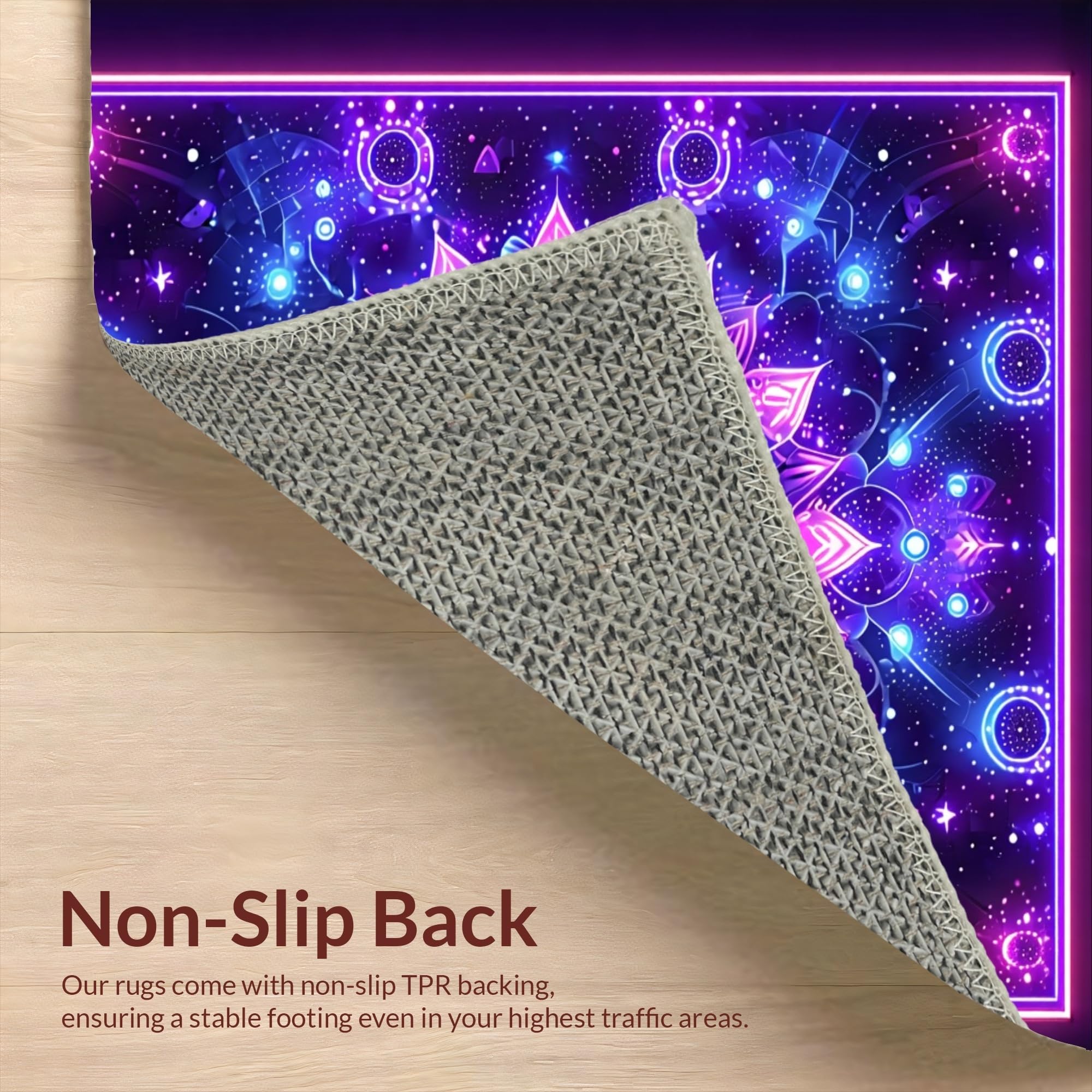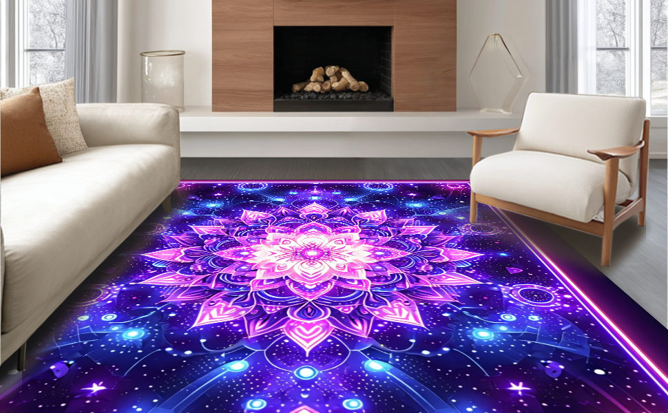 Ultra Soft Area Rug, Non Slip, Stain Resistant, Washable Area Rugs for Living Room, Bedroom, Captivating Electric Color Mandala(Purple) Overview: