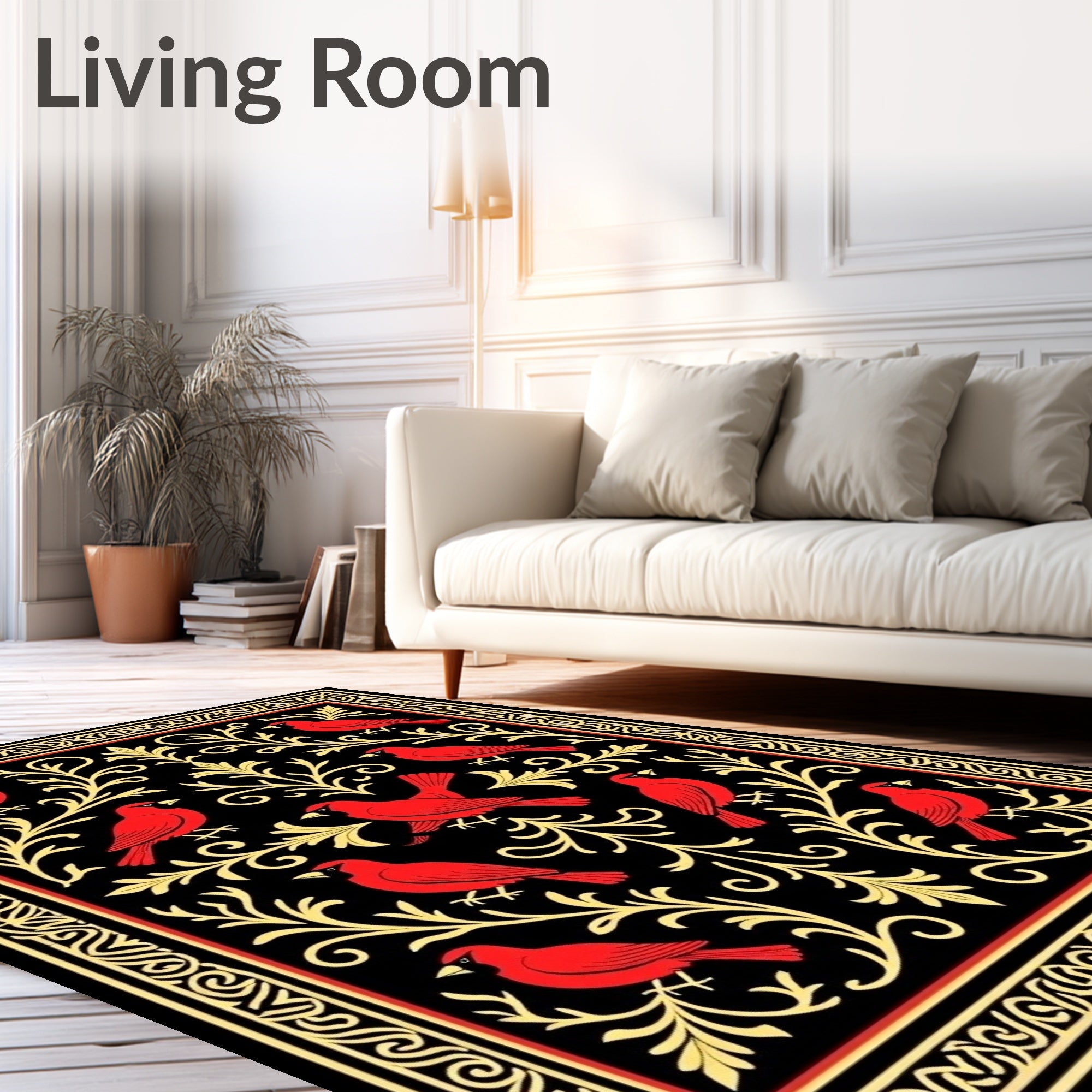 Flatwoven High Traffic Area Rug, Cardinal Damask Dorm Floor, Non Slip, Stain Resistant, Washable Area Rugs for Living Room, Bedroom (Black) Overview: