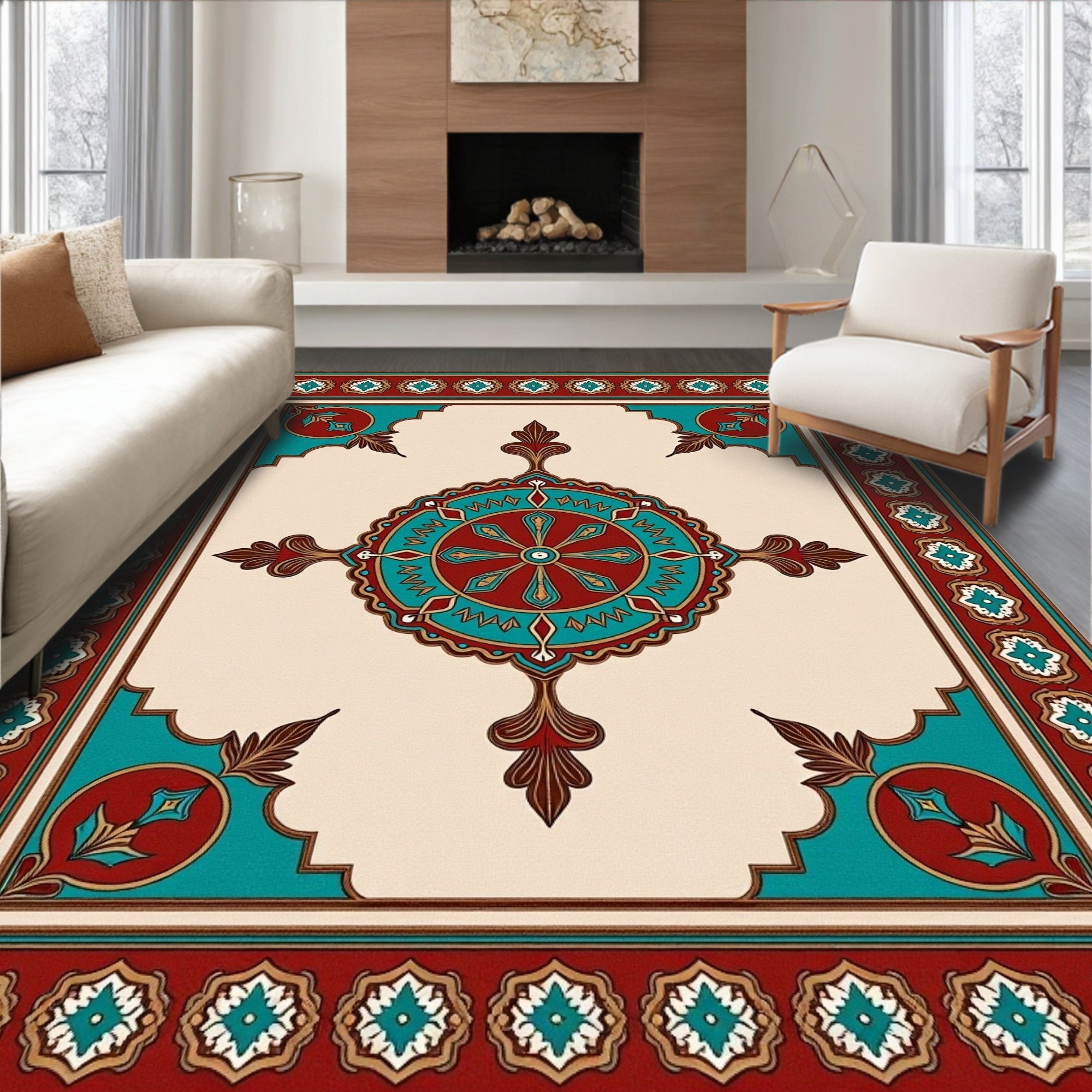 Ultra Soft Area Rug, Non Slip, Stain Resistant, Washable Area Rugs for Living Room, Bedroom, Caria Vintage Medallion Tapestry Heritage(Beige) Overview: