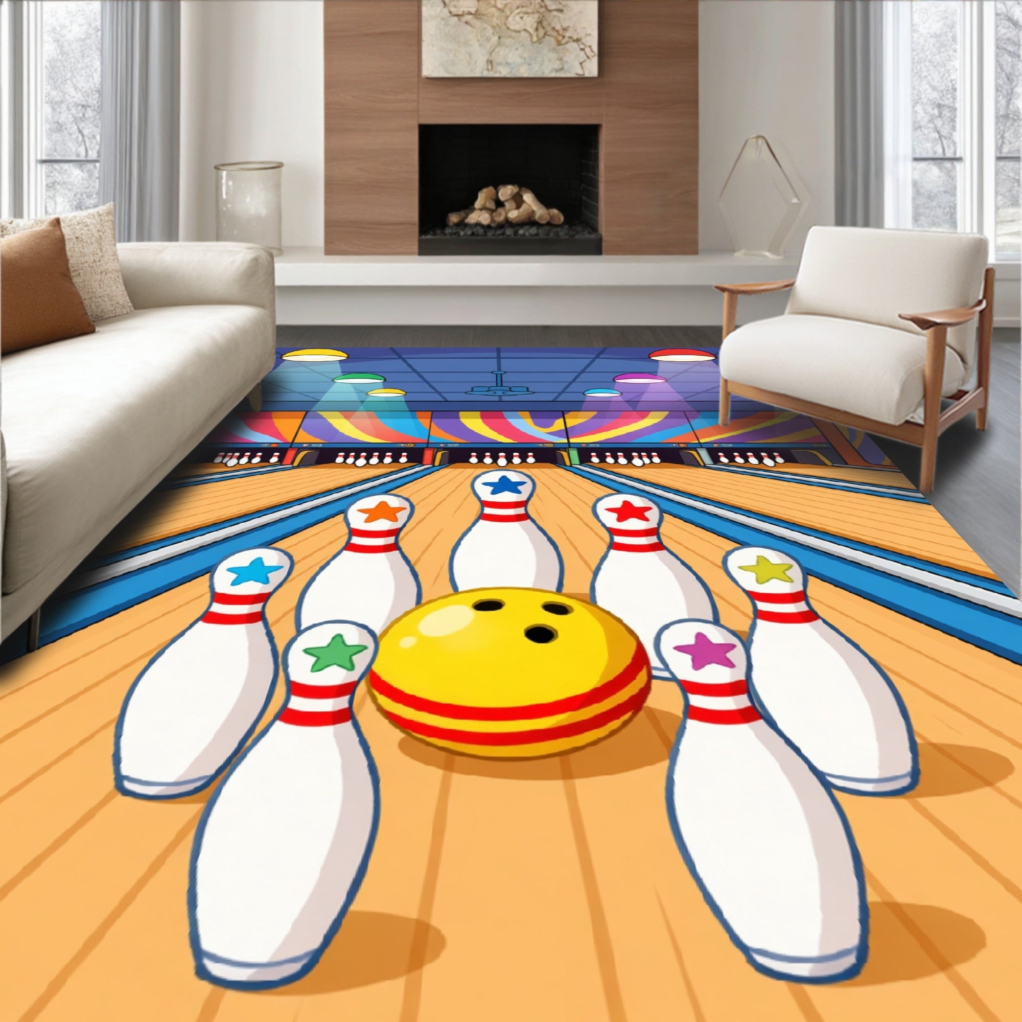 Ultra Soft Area Rug, Non Slip, Stain Resistant, Washable Area Rugs for Living Room, Bedroom, Cartoon Smiley Bowling Ball Strike Setup(brown) Overview: