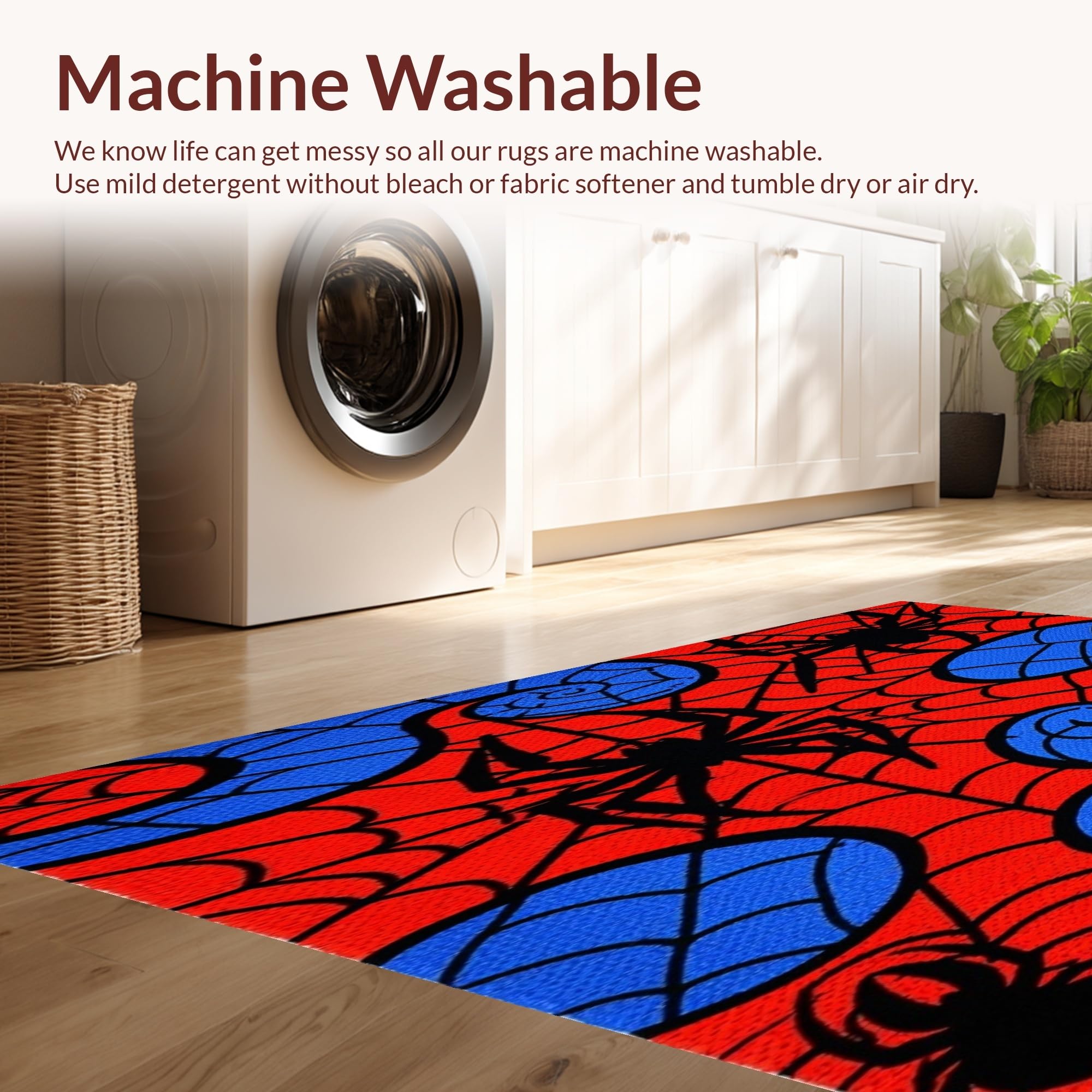 Ultra Soft Area Rug, Non Slip, Stain Resistant, Washable Area Rugs for Living Room, Bedroom, Cartoon Spider Burst Area Rug with Energetic Red Blue Comic Graphics(Red) Overview: