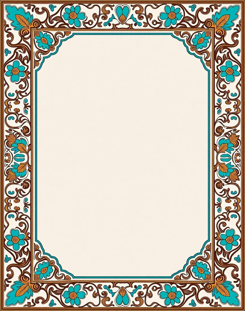 Cascading Petal Mosaic with Botanical Ornaments and Flourished Borders(Turquoise)