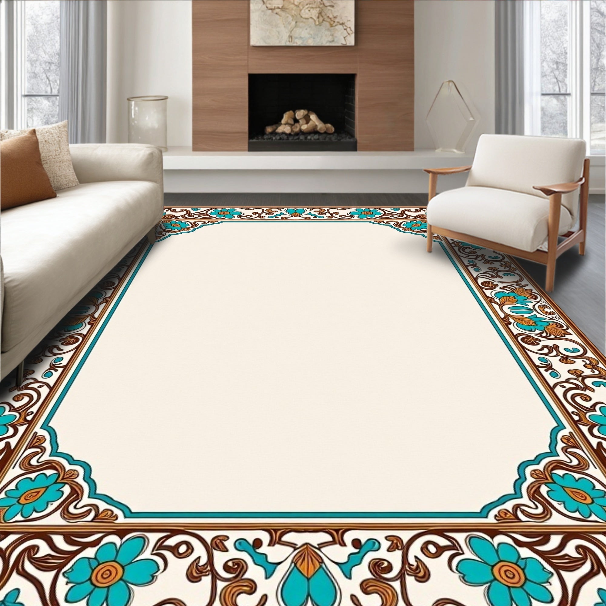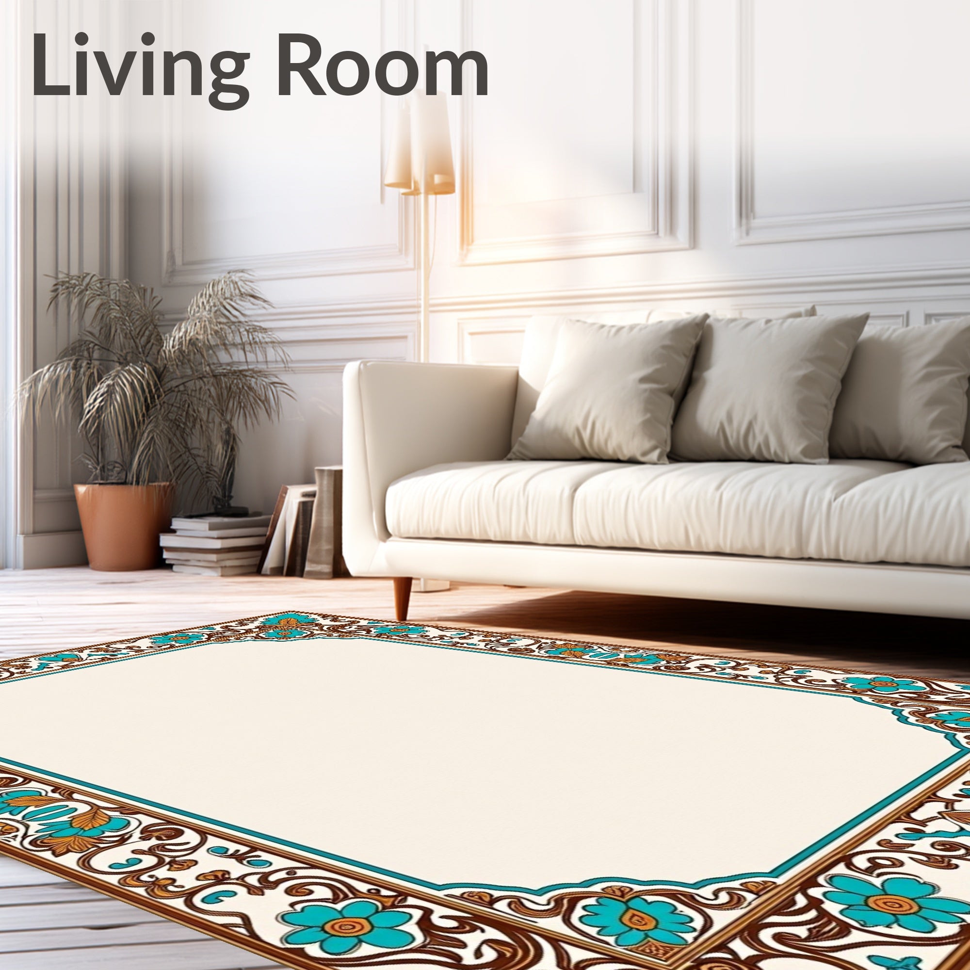 Ultra Soft Area Rug, Non Slip, Stain Resistant, Washable Area Rugs for Living Room, Bedroom, Cascading Petal Mosaic with Botanical Ornaments and Flourished Borders(Turquoise) Overview: