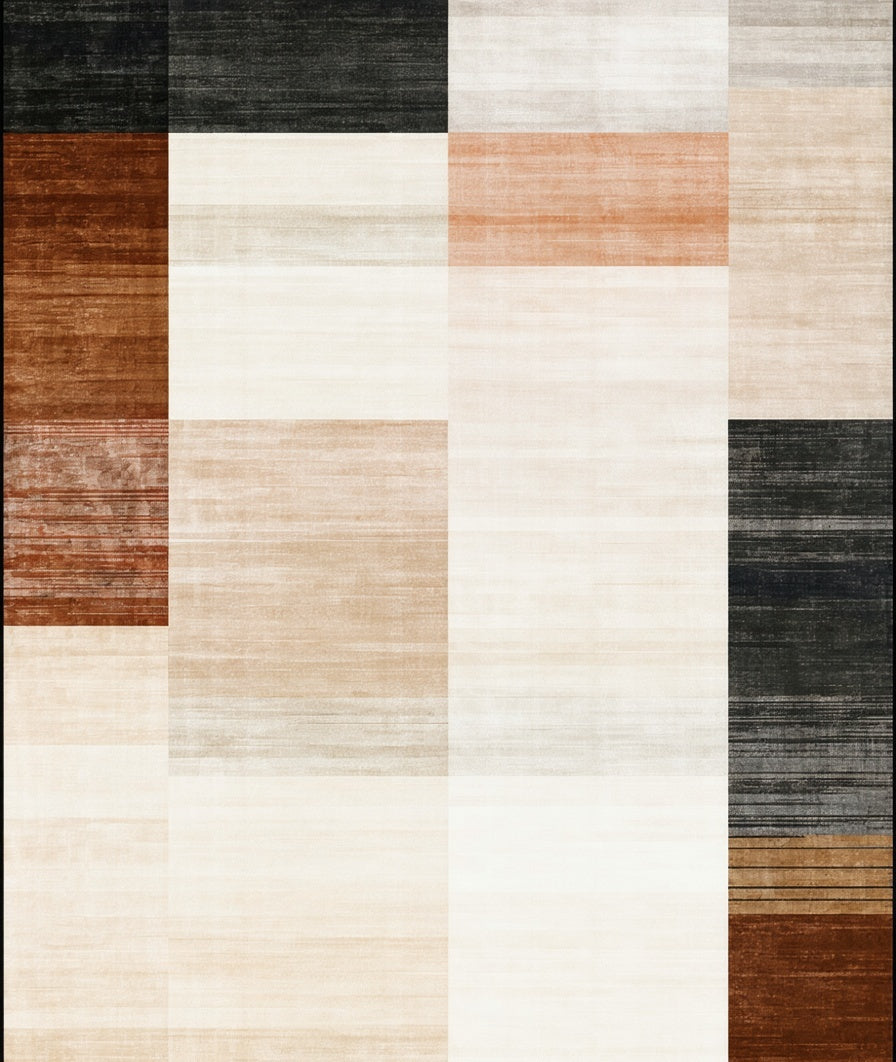 Ultra Soft Area Rug, Non Slip, Stain Resistant, Washable Area Rugs for Living Room, Bedroom, Casual Brown Beige with Dynamic Abstract Blocks and Gradient Border Design(Beige) Overview: