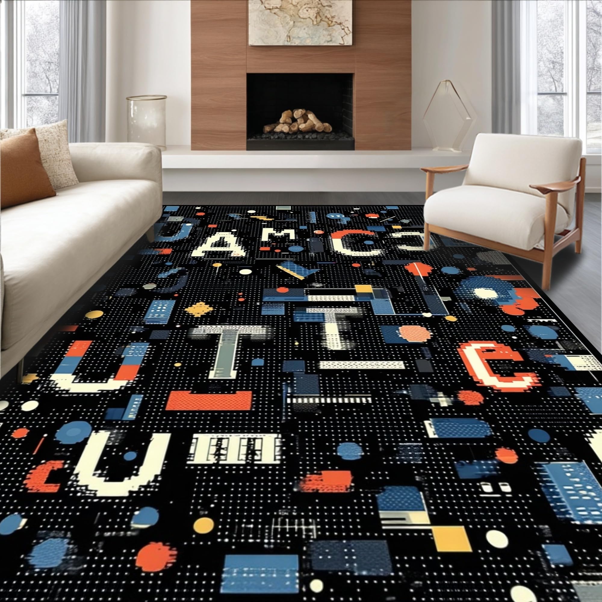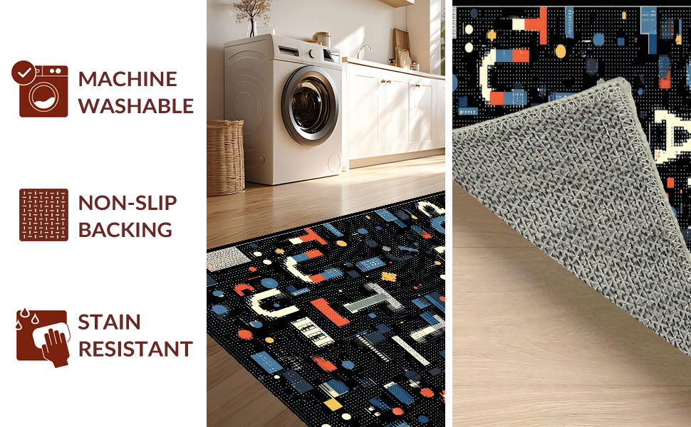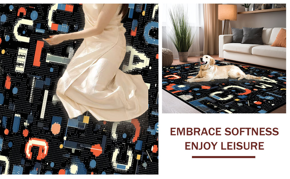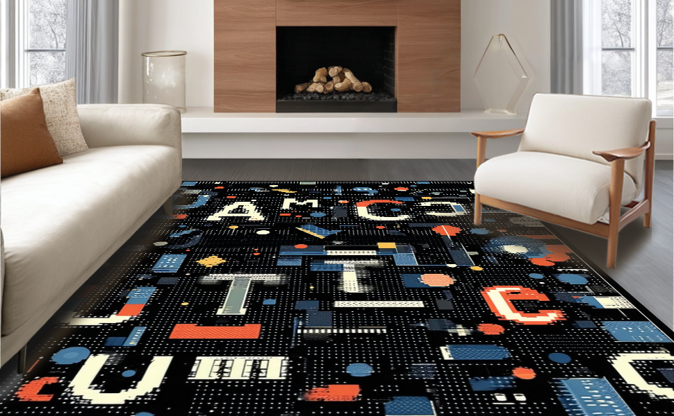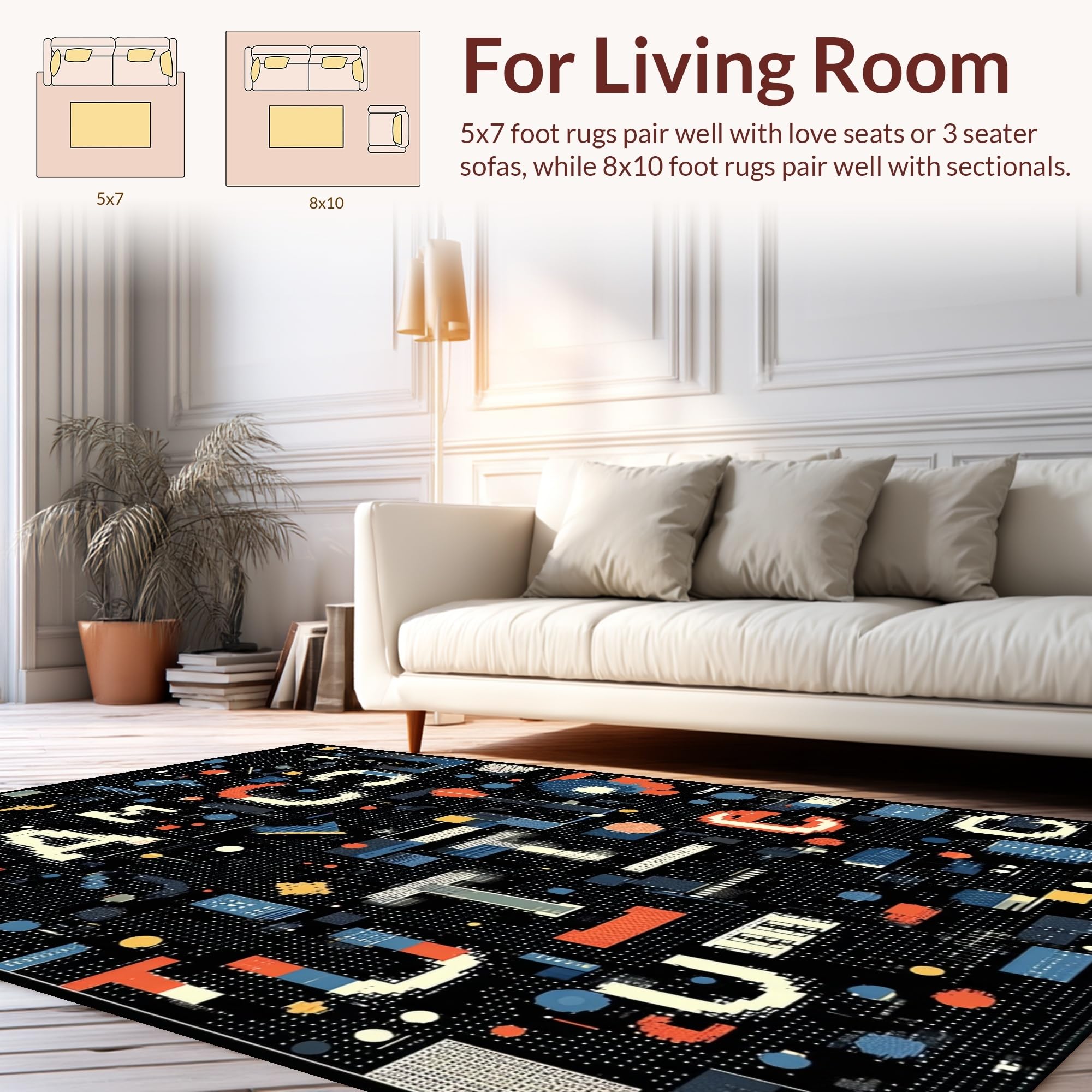 Ultra Soft Area Rug, Non Slip, Stain Resistant, Washable Area Rugs for Living Room, Bedroom, Casual Modern Typography Aesthetic(Black) Overview: