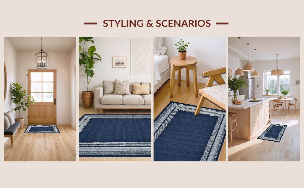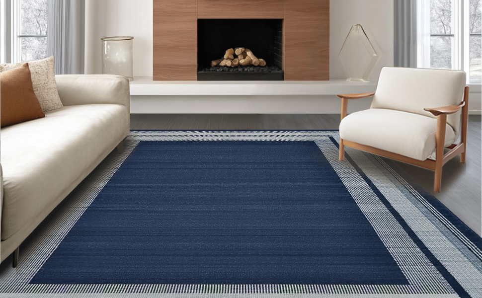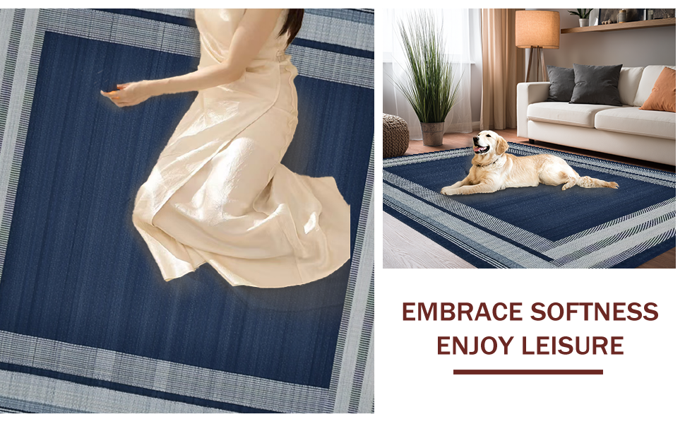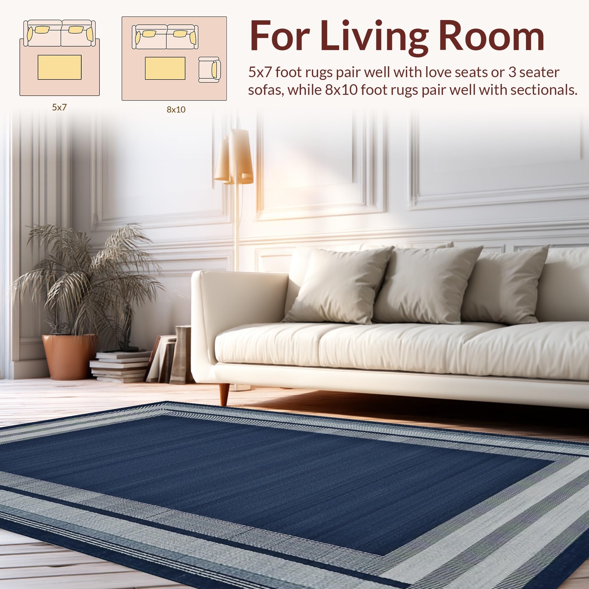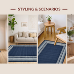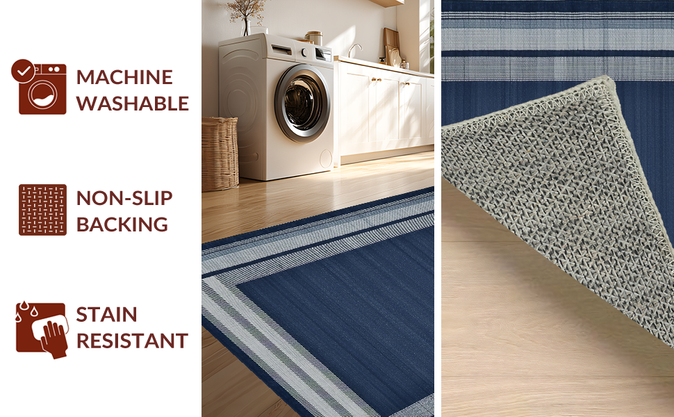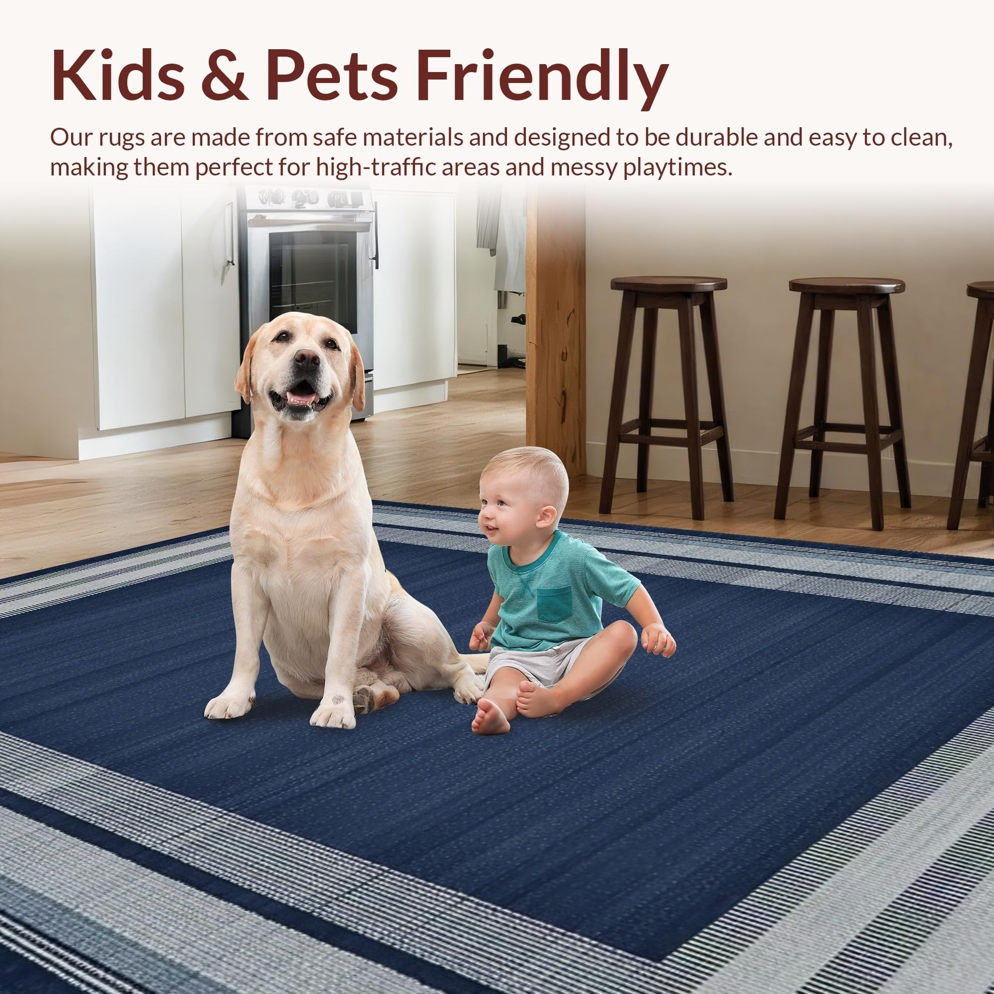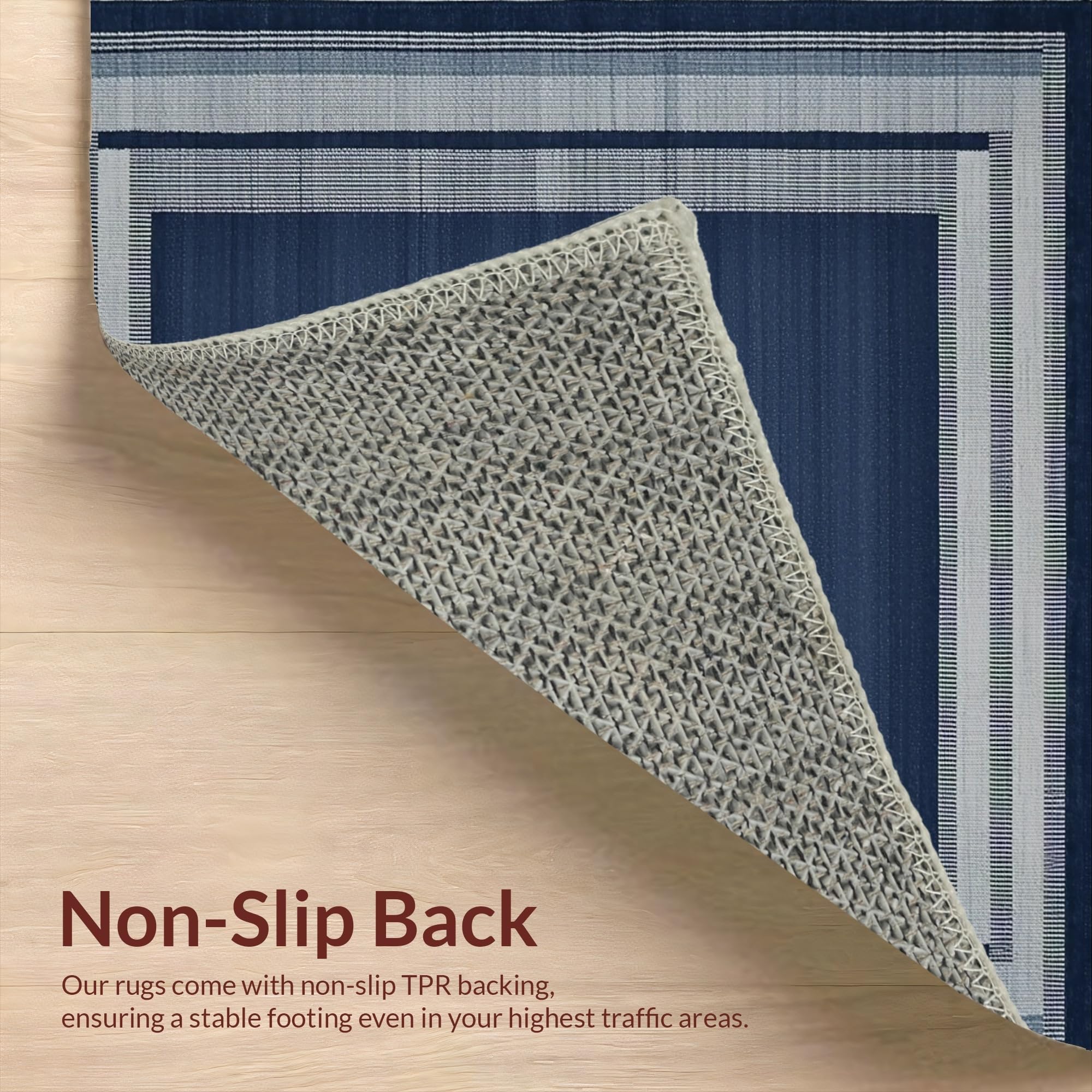 Ultra Soft Area Rug, Non Slip, Stain Resistant, Washable Area Rugs for Living Room, Bedroom, Casual Navy Striped Charm(Blue) Overview:
