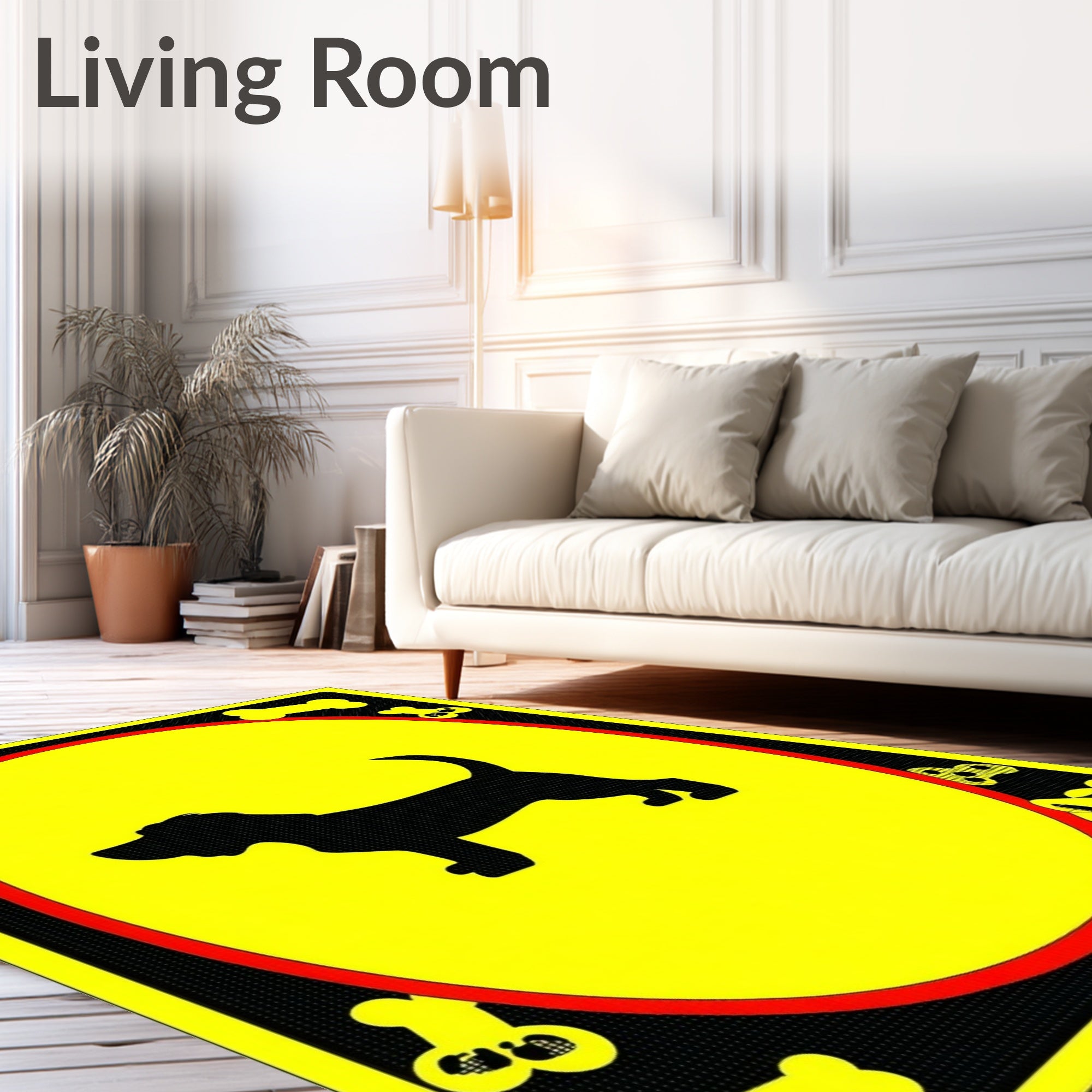 Ultra Soft Area Rug, Non Slip, Stain Resistant, Washable Area Rugs for Living Room, Bedroom, Caution Dogs Will Bark If You Knock Loud Yelling Inside Area Rug(Yellow) Overview: