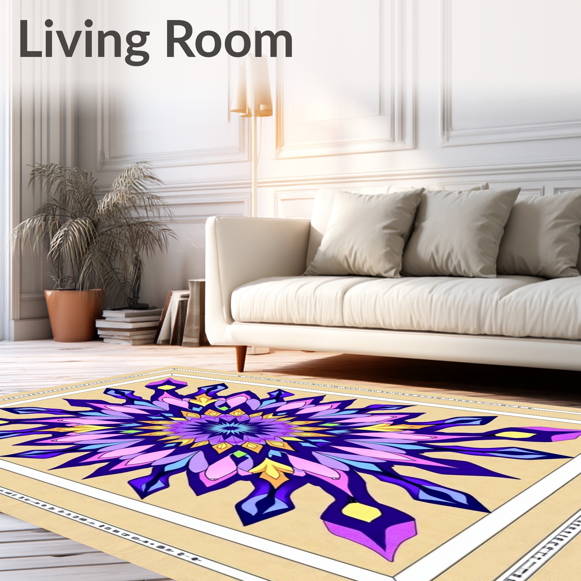 Ultra Soft Area Rug, Non Slip, Stain Resistant, Washable Area Rugs for Living Room, Bedroom, Celestial Aura Starburst Mosaic Design(Purple) Overview: