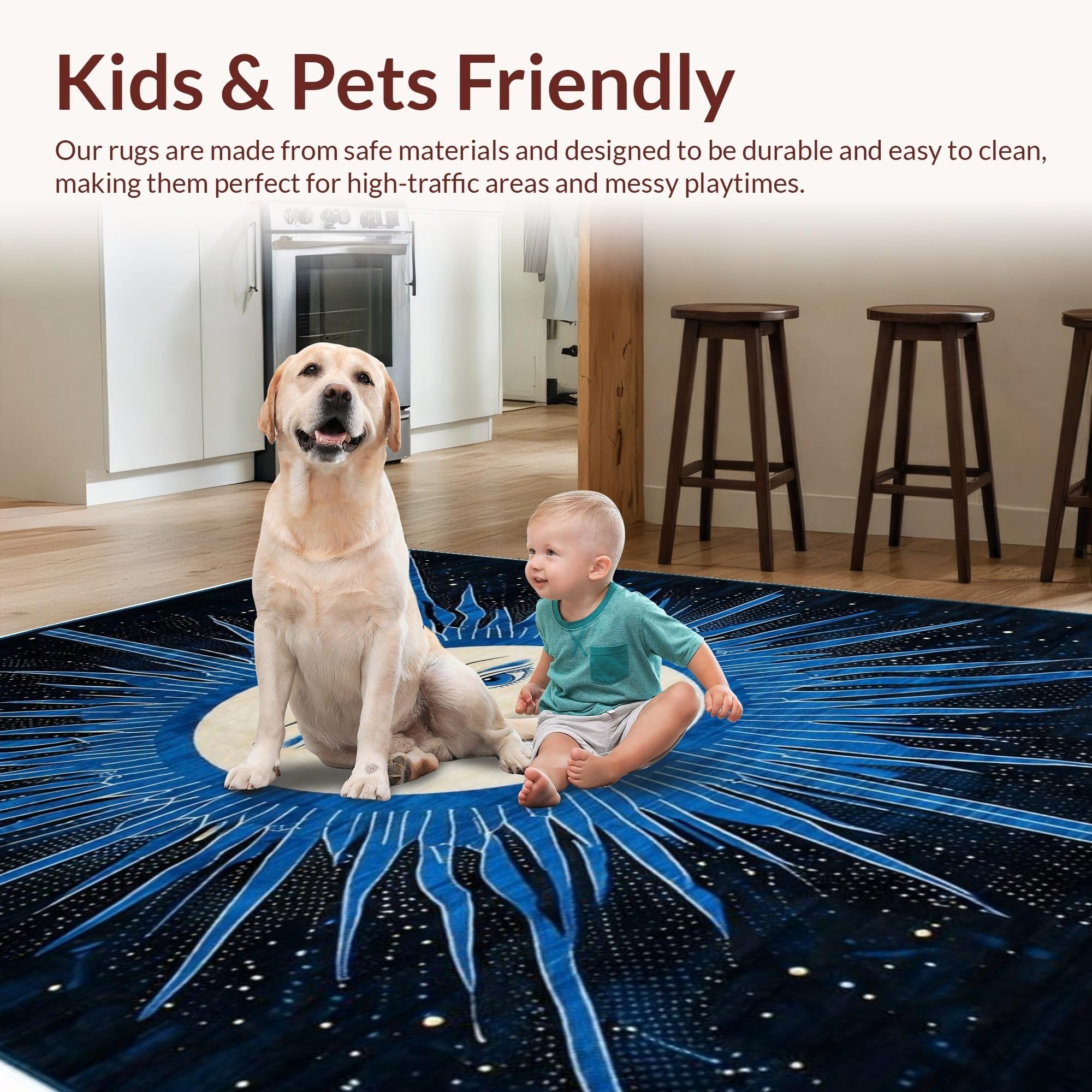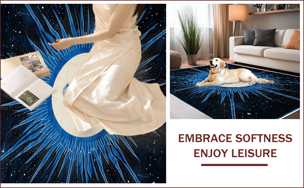 Ultra Soft Area Rug, Non Slip, Stain Resistant, Washable Area Rugs for Living Room, Bedroom, Celestial Black Abstract Arrangement(Blue) Overview: