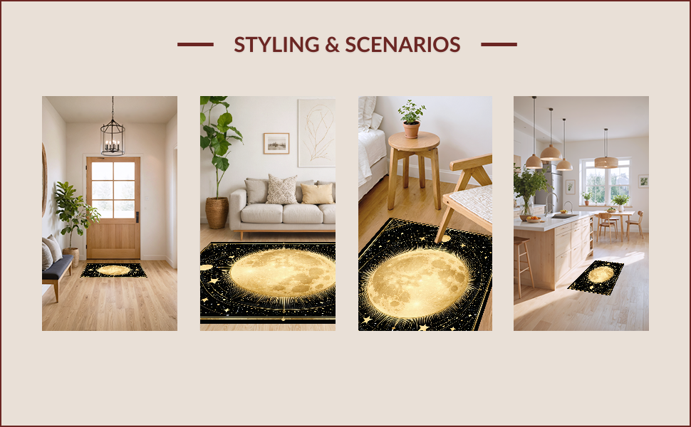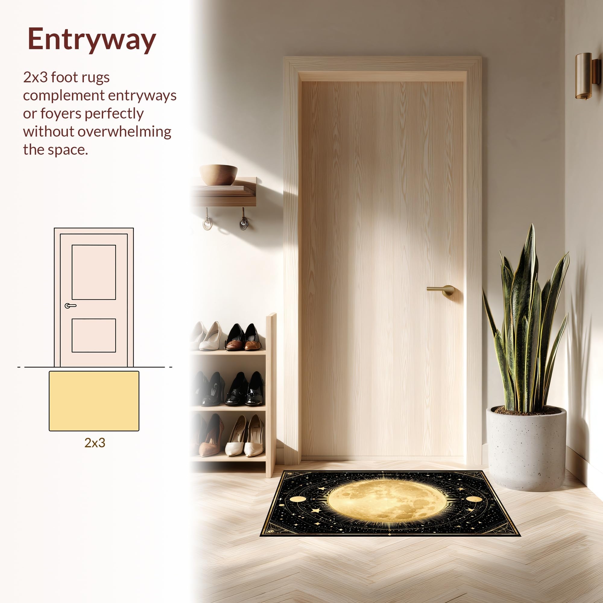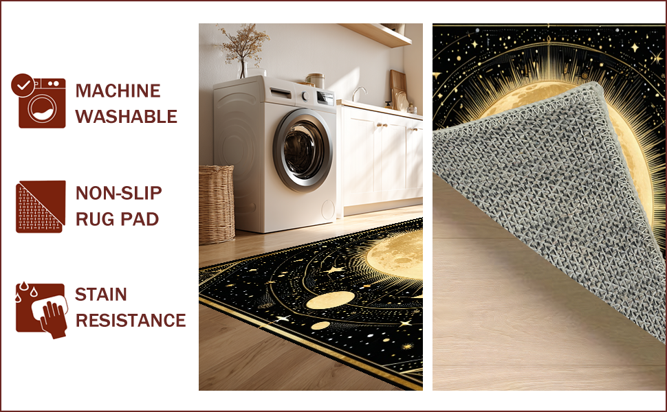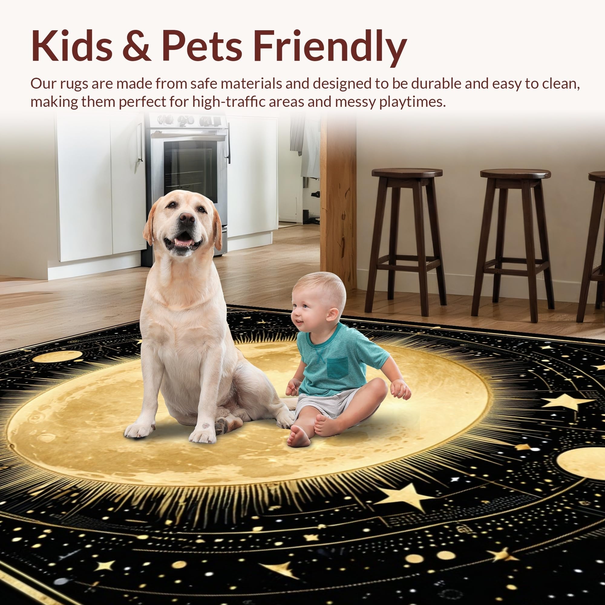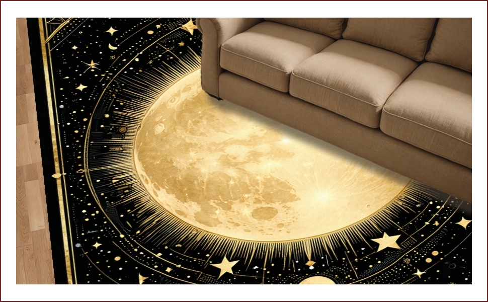 Ultra Soft Area Rug, Non Slip, Stain Resistant, Washable Area Rugs for Living Room, Bedroom, Celestial Black and White Elegance(Gold) Overview: