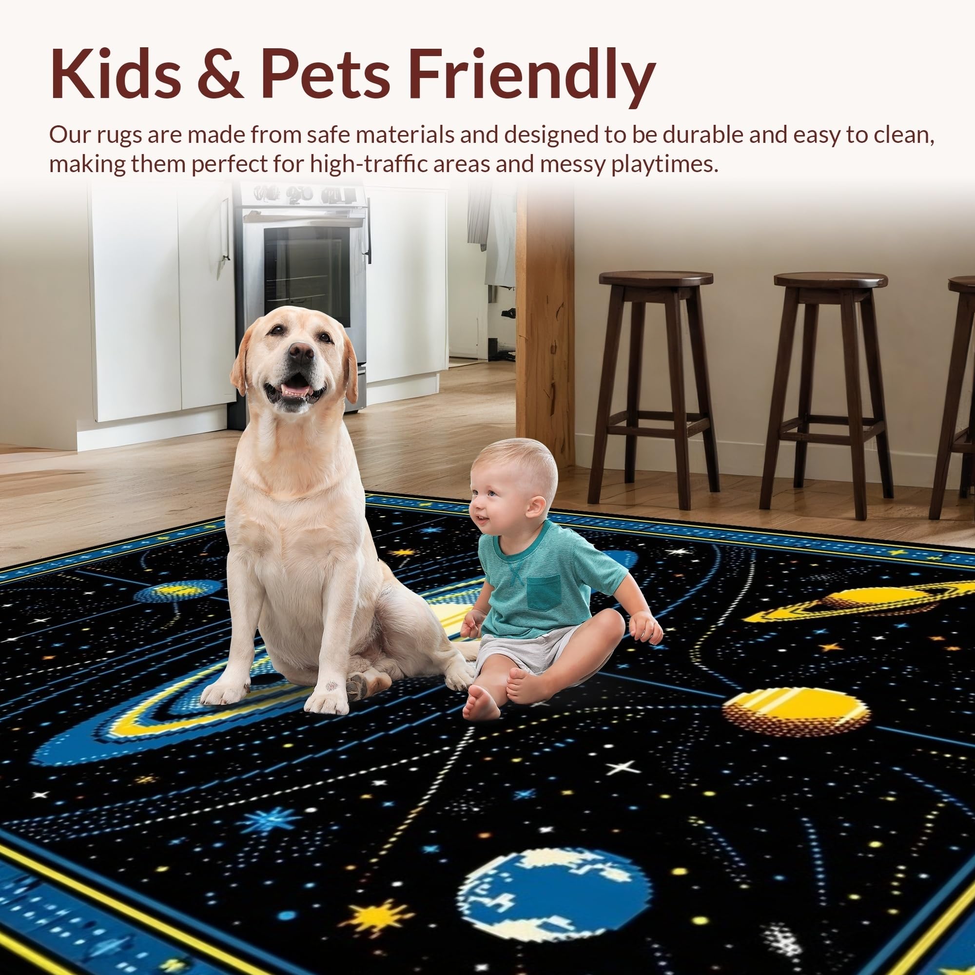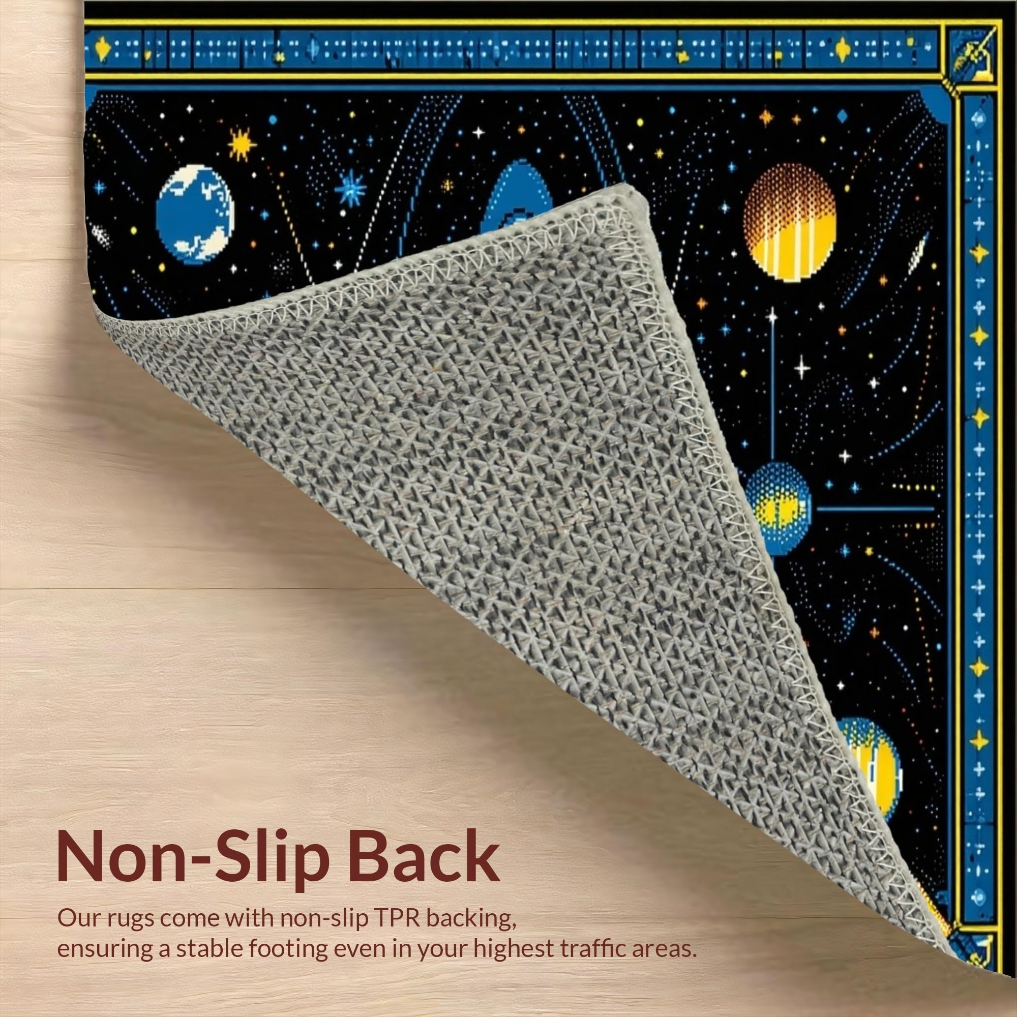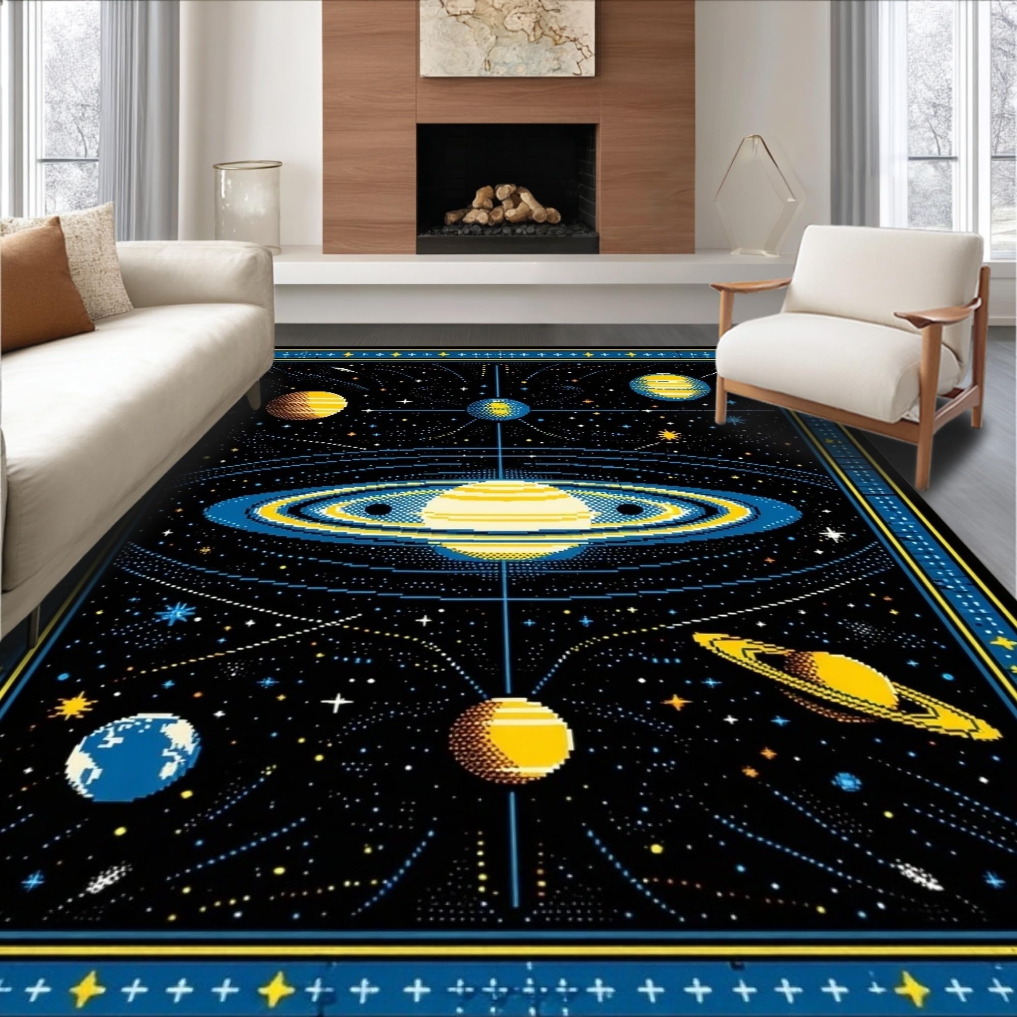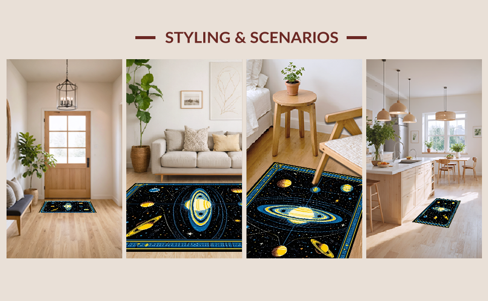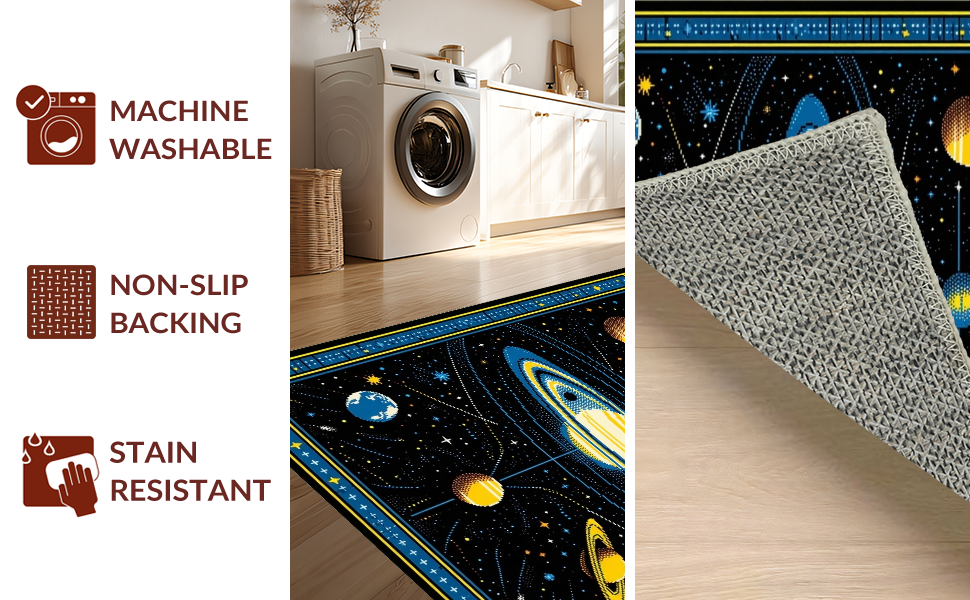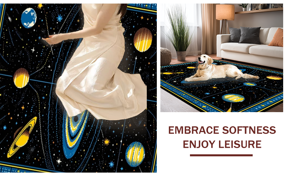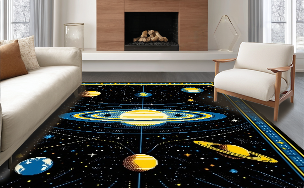 Ultra Soft Area Rug, Non Slip, Stain Resistant, Washable Area Rugs for Living Room, Bedroom, Celestial Black Orbit Design(Black) Overview: