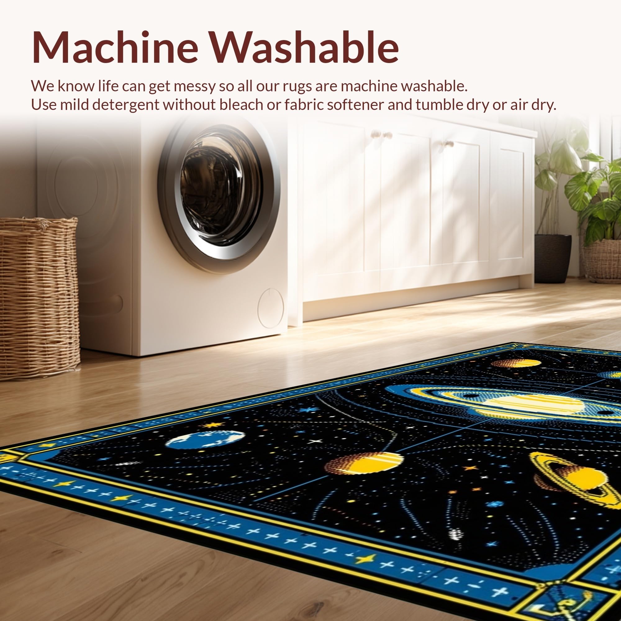 - Machine Washable: Our rugs can be easily thrown in the wash machine.