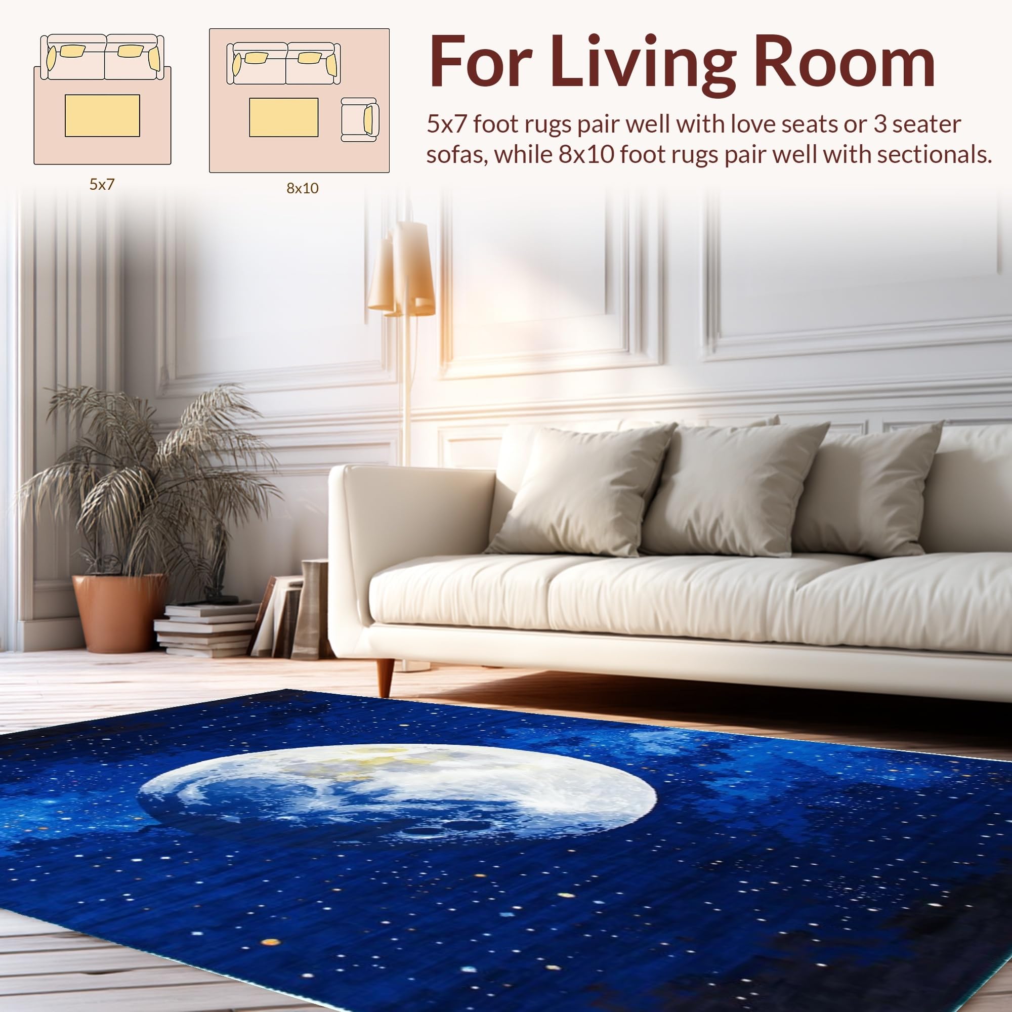 Ultra Soft Area Rug, Non Slip, Stain Resistant, Washable Area Rugs for Living Room, Bedroom, Celestial Blue Toned Elegance(Blue) Overview: