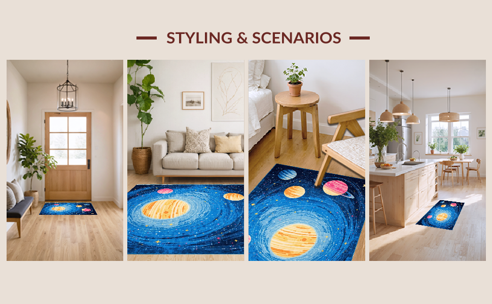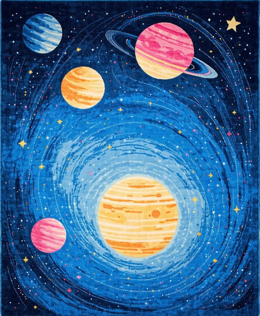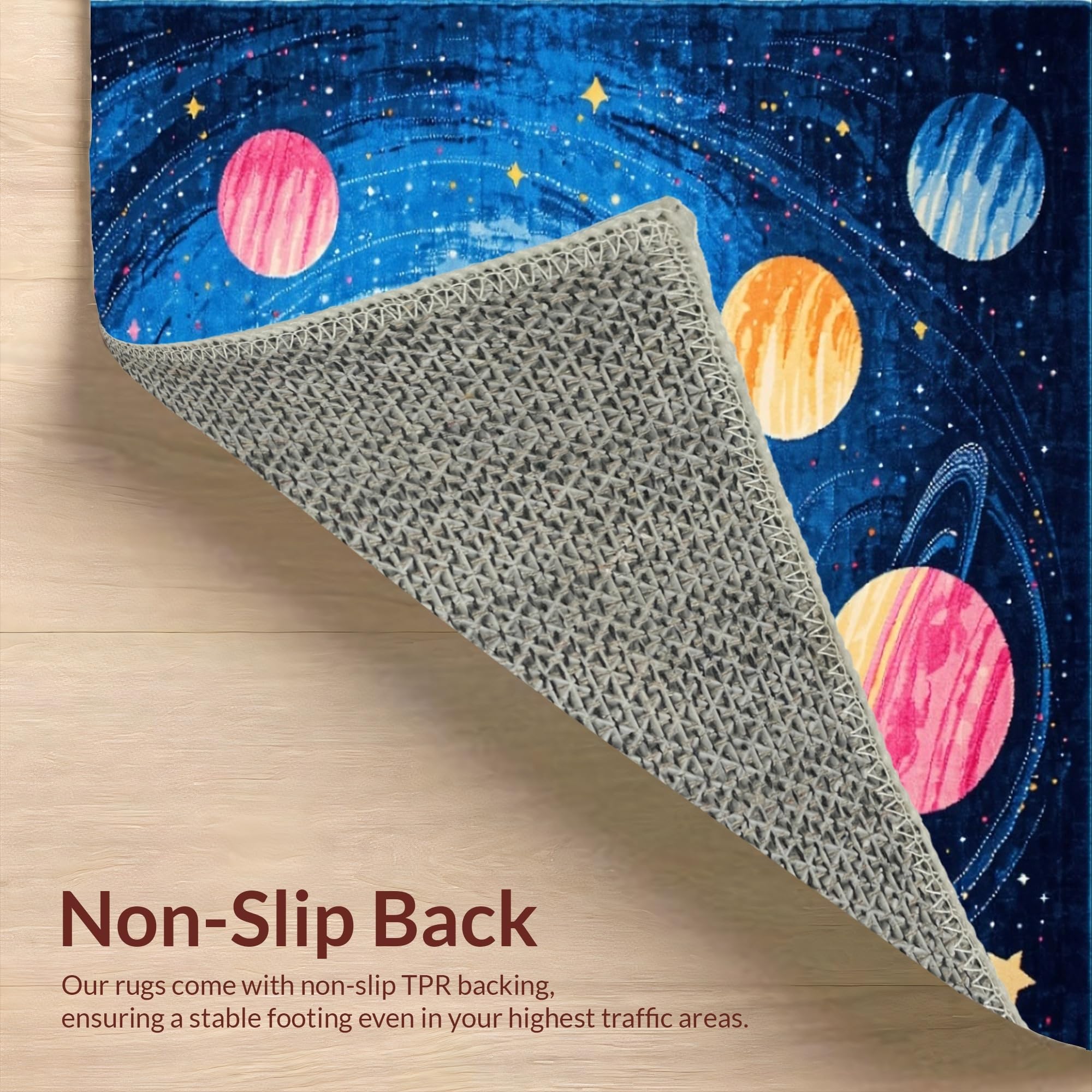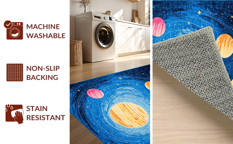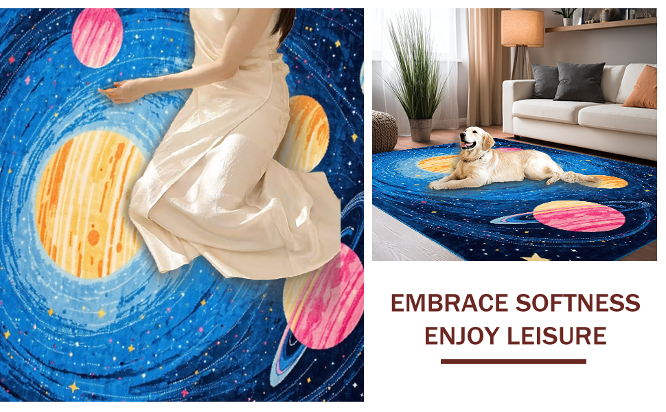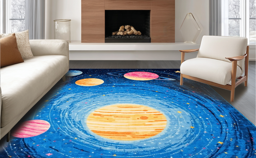 Ultra Soft Area Rug, Non Slip, Stain Resistant, Washable Area Rugs for Living Room, Bedroom, Celestial Cartoon Cosmos Motif(Blue) Overview: