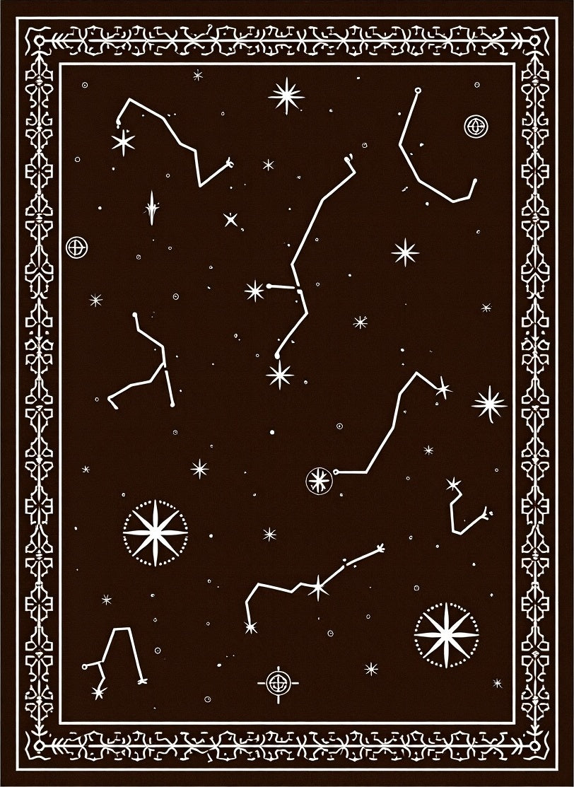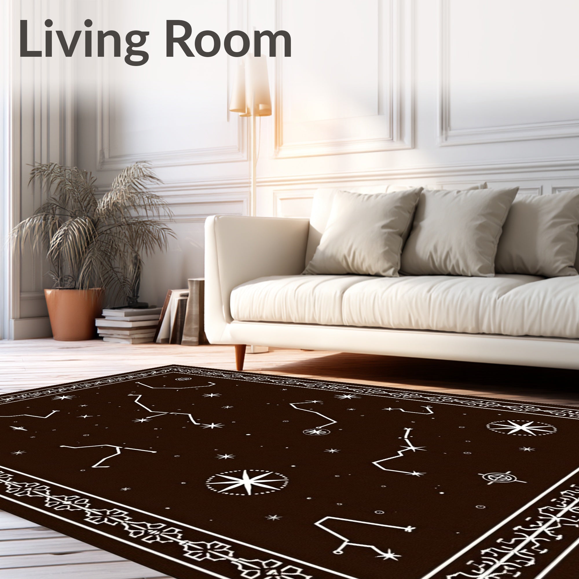 Flatwoven High Traffic Area Rug, Celestial Constellation Astrology Inspired Artwork, Non Slip, Stain Resistant, Washable Area Rugs for Living Room, Bedroom (Brown) Overview: