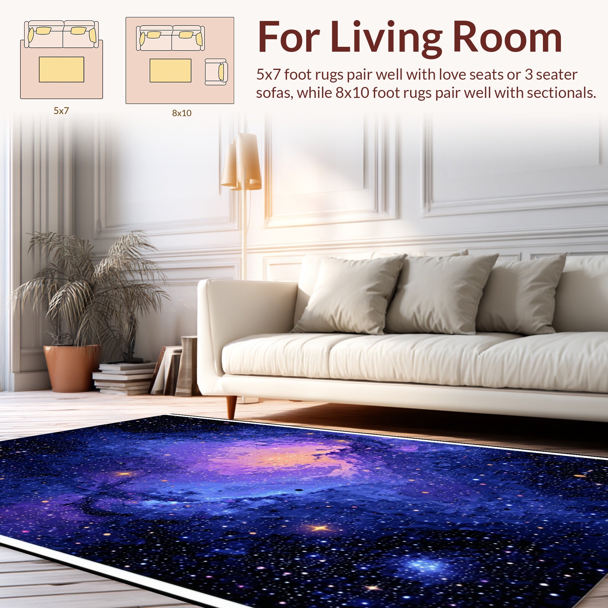 Flatwoven High Traffic Area Rug, Celestial Cosmic Color Burst, Non Slip, Stain Resistant, Washable Area Rugs for Living Room, Bedroom (Blue) Overview: