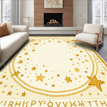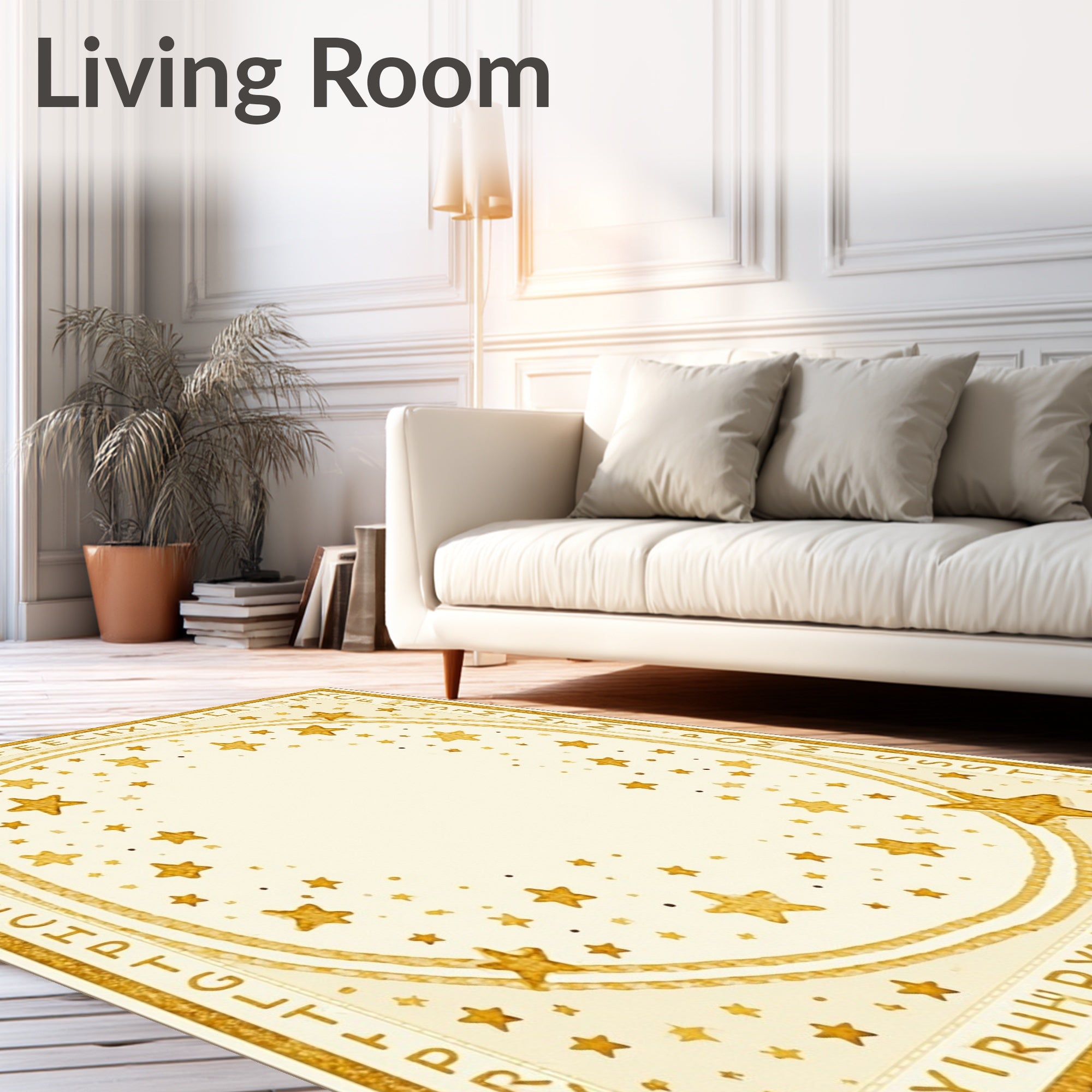 Ultra Soft Area Rug, Non Slip, Stain Resistant, Washable Area Rugs for Living Room, Bedroom, Celestial Dreams Circular Alphabet Letters(Beige) Overview: