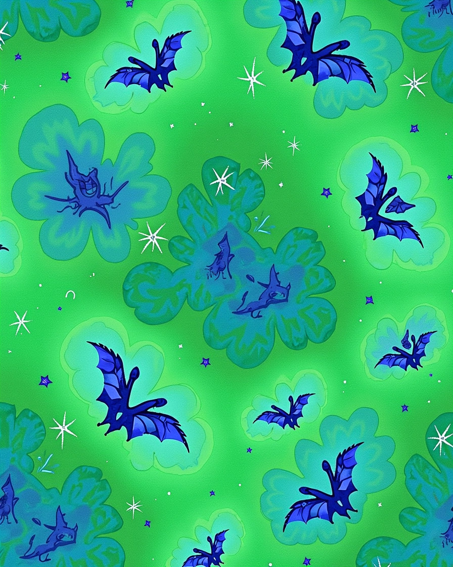 Celestial Dreamscape With Glittering Bats And Moons Motif(Green)